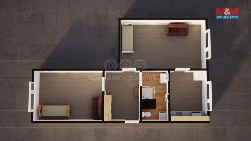 Byt je v dobrém stavu a tvoří jej dvě prostorné obytné místnosti, kuchyně, koupelna s WC a praktická sklepní kóje přímo u vchodu. Díky orientaci bytu a chytře řešené dispozici si budete užívat dostatek denního světla i příjemný výhled do okolí.
