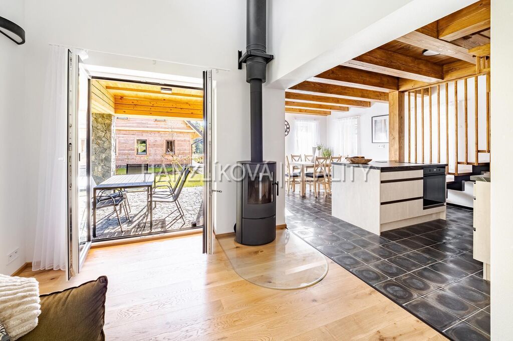 Areál je zasazený do nedotčené přírody, obklopený hlubokými lesy a nabízí naprostý klid a soukromí - ideální prostředí pro odpočinek i rodinnou rekreaci. Hranice pozemku sousedí s chráněnou krajinou oblastní a je zde stavební uzávěra. Jedinečnou atmosféru dotváří malý potůček, který se vine podél pozemku a přináší do prostředí osvěžující nádech a kouzlo horské přírody. Šum vody i zeleně v okolí dělají z tohoto místa ideální útočiště pro odpočinek, rekreaci či rodinné zázemí. Provozní náklady se pohybují kolem 6-8 tis Kč měsíčně. Nemovitost je možné využívat celoročně - ať už jako rodinné rekreační zázemí nebo jako investici s možností pronájmu. Možnost zajištění přes agenturu včetně zajištění úklidu.