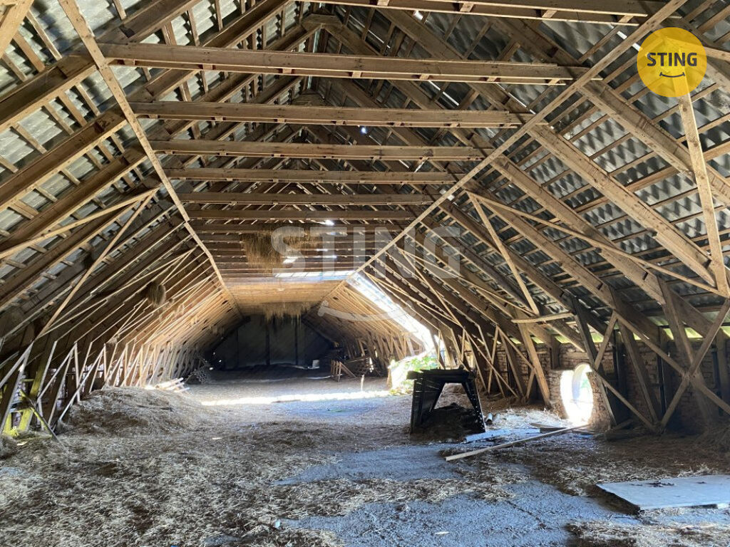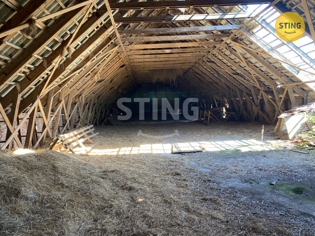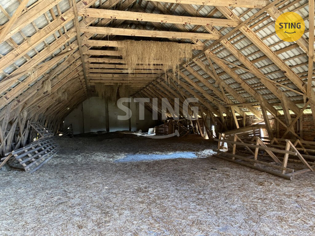 Další vybavení: Součástí pozemku je skladovací hala s rozměrným půdním prostorem o zastavěné ploše 926m², částečně přebudována na vytápěnou nástrojárnu o ploše 170m2, vybavená kancelář o velikosti 10m2 a sociální zázemí( WC, umyvadlo, sprcha. Nutná rekonstrukce střechy.