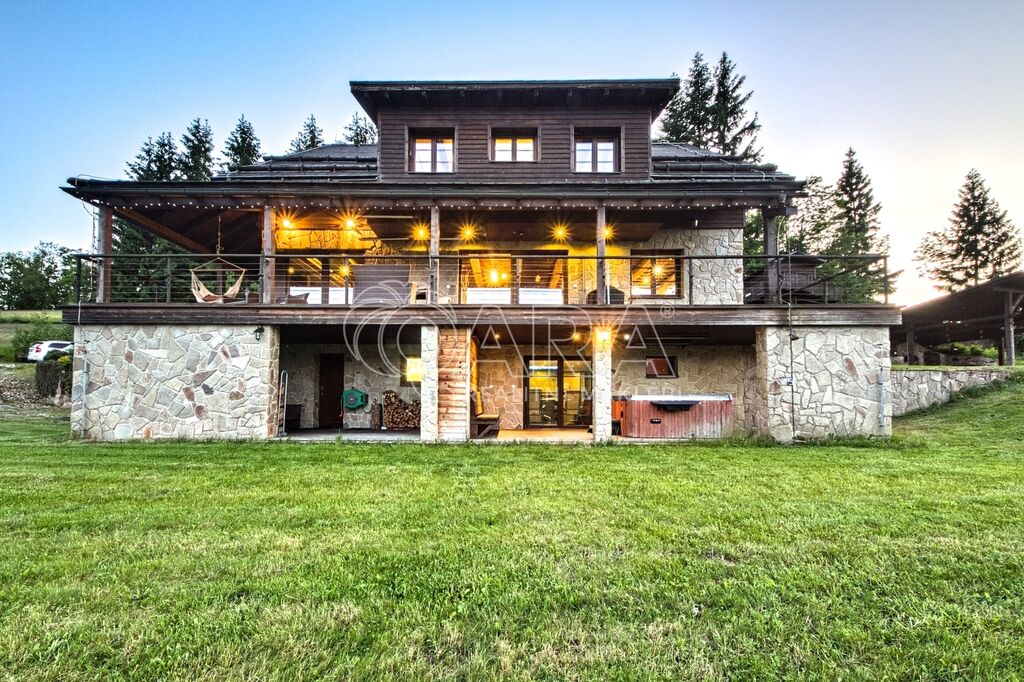 Nabízíme ke koupi exkluzivní horskou rezidenci ve vyhledávané lokalitě Vrchlabí, přímo mezi skiareály Bubákov a Herlíkovice. Dům o dispozici 7+kk je doplněn o samostatný apartmán 2+1 a nabízí celkovou užitnou plochu 568 m². Nachází se na prostorném pozemku o rozloze 4 087 m² a je nabízen kompletně vybavený, připravený k okamžitému užívání. Co na této nemovitosti oceníte nejvíce je naprosté soukromí, klid a nádherné výhledy.