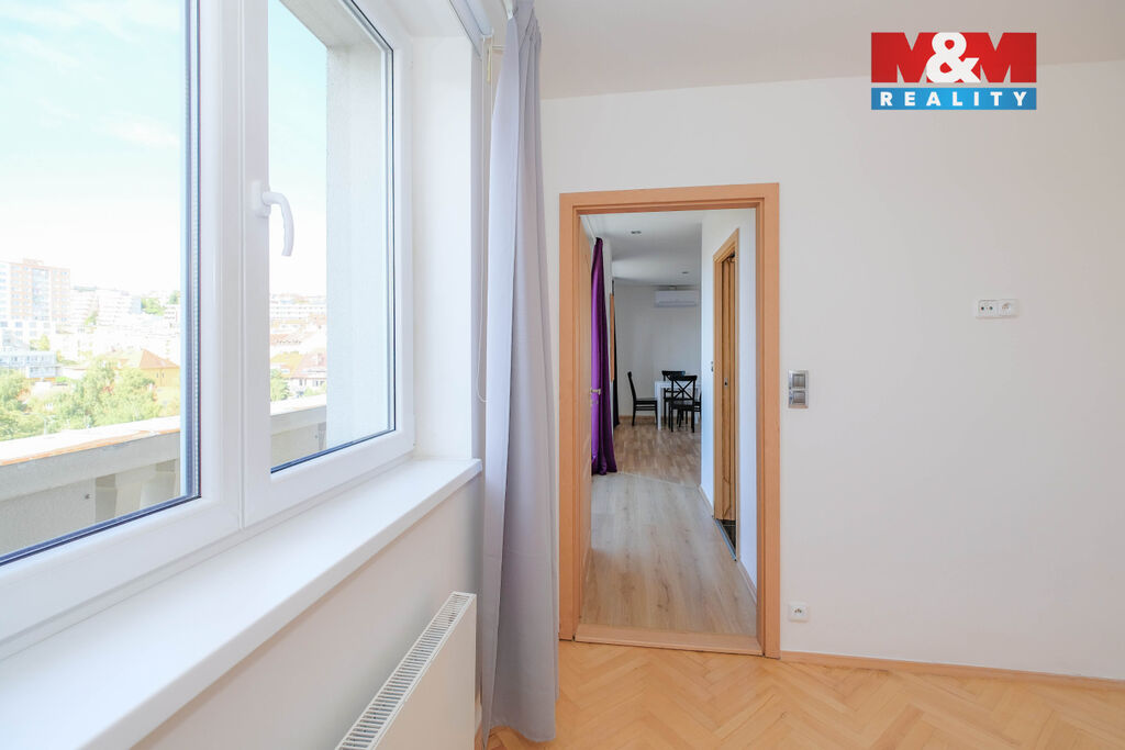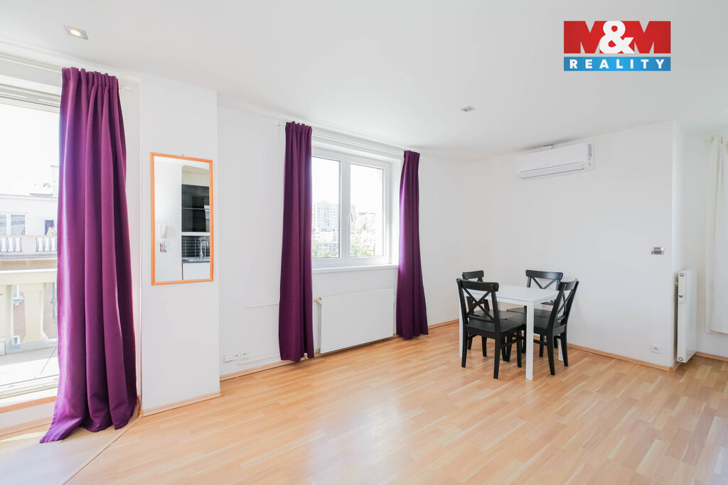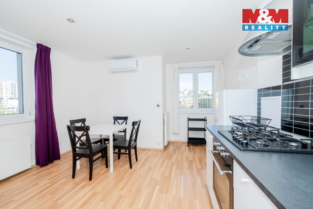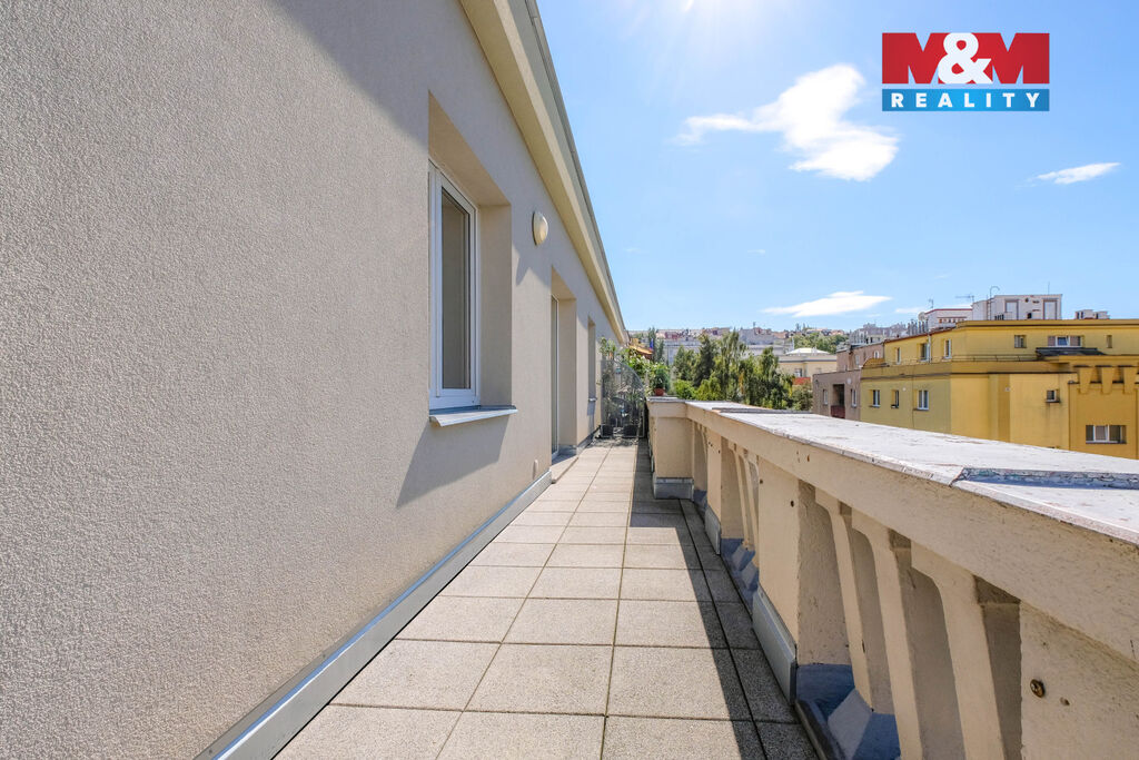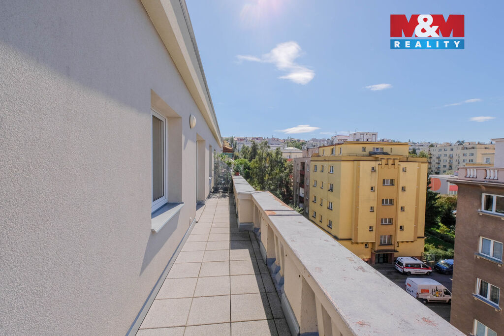 Krásný slunný střešní byt 2+kk na Břevnově, 45 m² s terasou podél celého bytu o velikosti dalších více než 20 m². Byt s klimatizací se nachází v posledním 5. patře zatepleného cihlového domu s výtahem. Plastová okna včetně vstupu na terasu jsou orientována na západ na terasu, okno u jídelního koutu na sever. Byt je zařízený kuchyňskou linkou s plynovou varnou deskou, elektrickou troubou a lednicí. Jídelní stůl se židlemi, televize, v ceně nájmu Vodafone internet. V ložnici dřevěné parkety, v obývacím pokoji plovoucí podlaha. V koupelně sprcha, pračka, topný žebřík a závěsná toaleta. K bytu patří sklepní kóje v suterénu domu. Byt je určený k dlouhodobému pronájmu pro 1 osobu nebo pár. Veškerá občanská vybavenost je v docházkové vzdálenosti od bytu, stejně jako zastávky autobusu Kajetánka a tramvaje Drinopol. Byt je v družstevním vlastnictví. Pro více informací a domluvení prohlídky bytu kontaktujte makléře.