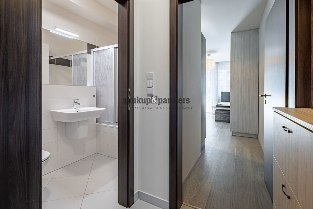 Byt 1+kk/ Balkon - 29 m2, který se nachází ve 2. podlaží novostavby kolaudované v roce 2020 v projektu Kaskády Barrandov, budova D. Byt je vybaven kuchyňskou linkou vč. značkových vestavných spotřebičů (lednice s mrazákem, indukční varná deska, el. trouba, myčka a digestoř), dále je v bytě nábytek na míru, vestavné skříně, vinylové podlahy v kombinaci s dlažbou, v koupelně je vana se zástěnou, pračka, vodovodní baterie Grohe, sanita Laufen. Orientace balkonu je západní. Nájemné 17 000,-Kč, poplatky 3 500,-Kč, kauce 34 000,-Kč, provize pro RK 17 000,-Kč + dph. Volné od 1.10.2025. Pro více informací volejte manažera nabídky.