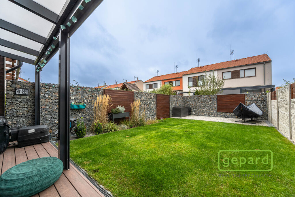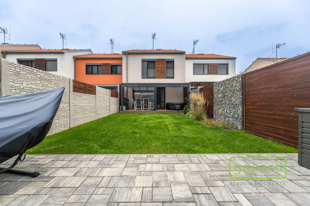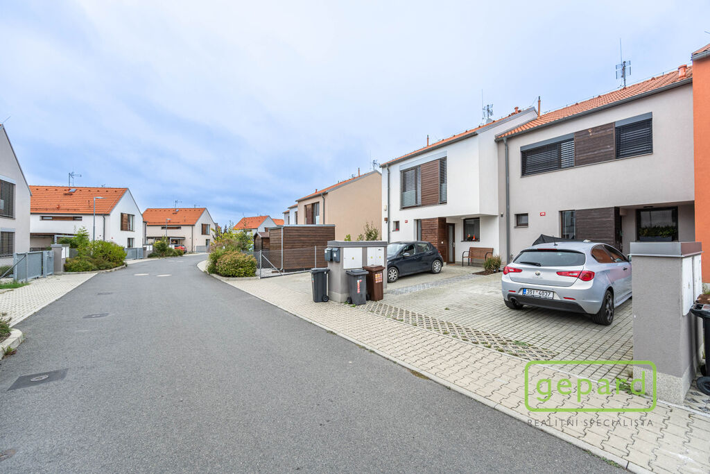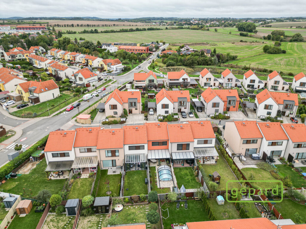 Realitní společnost Gepard nabízí prodej řadového rodinného domu o ploše 101,4 m2 a dispozici 4+kk v klidné části obce Drahelčice, ulice Císařská. Jedná se o dvoupodlažní novostavbu z roku 2019. Celková plocha pozemku činí 201 m2, z toho zastavěná plocha domu činí 64,6 m2, zahrada 85 m2 a prostor na parkování před domem 51,4 m2.