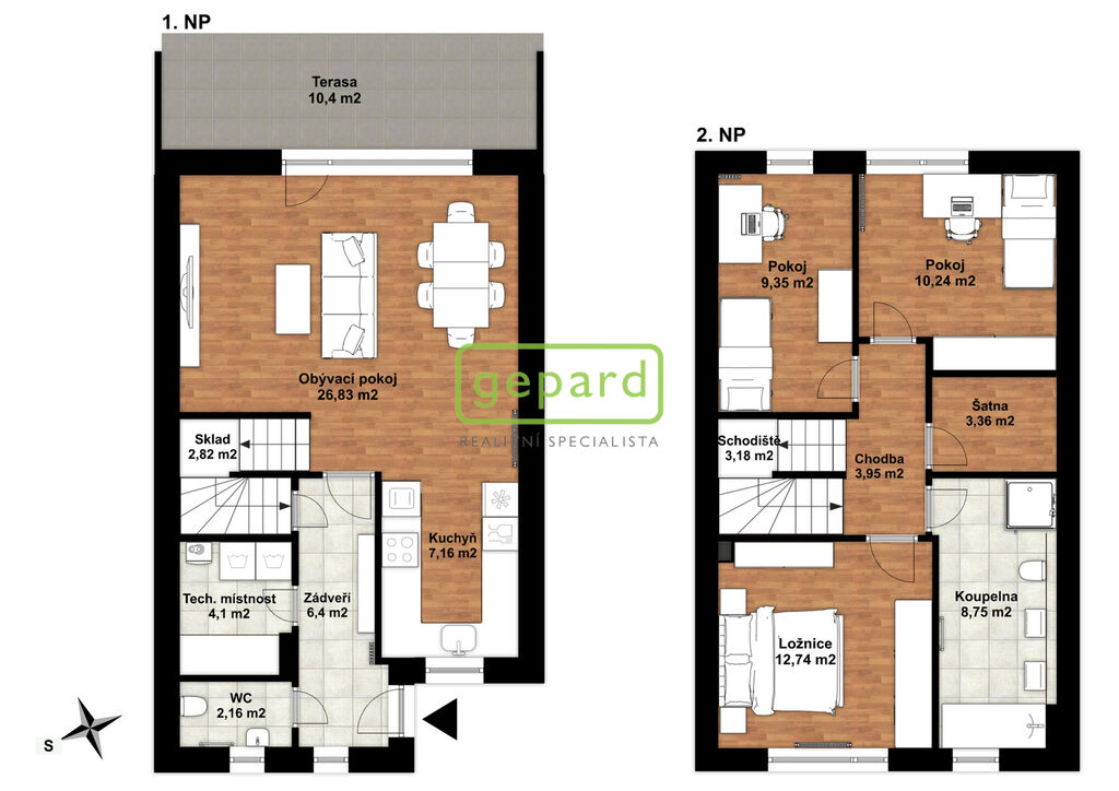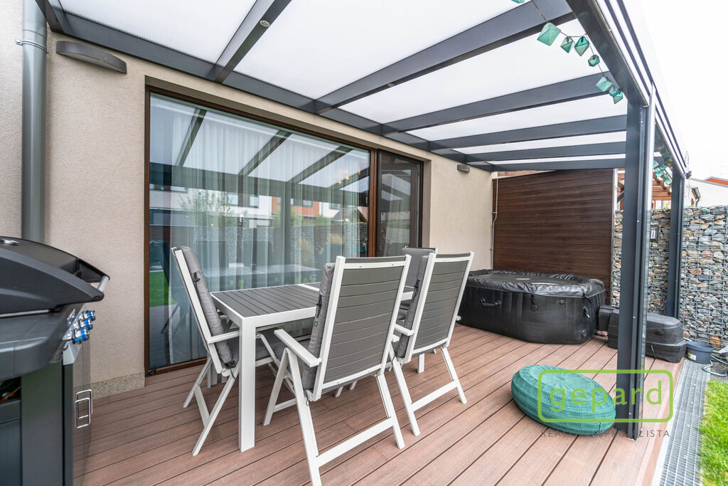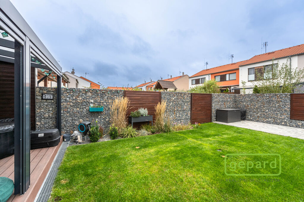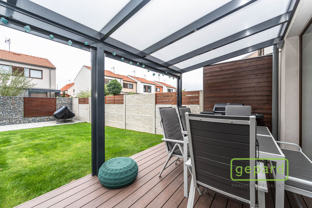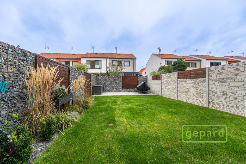 Realitní společnost Gepard nabízí prodej řadového rodinného domu o ploše 101,4 m2 a dispozici 4+kk v klidné části obce Drahelčice, ulice Císařská. Jedná se o dvoupodlažní novostavbu z roku 2019. Celková plocha pozemku činí 201 m2, z toho zastavěná plocha domu činí 64,6 m2, zahrada 85 m2 a prostor na parkování před domem 51,4 m2.