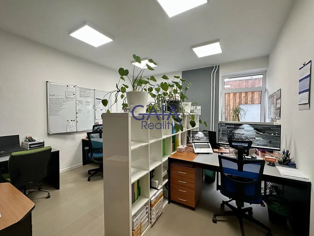 Nabízené prostory tvoří dvě kanceláře s možností rozdělení na tři samostatné místnosti. Sociální zařízení je sdíleno s dalšími nájemci. Součástí nájmu jsou dvě parkovací stání přímo u objektu. Prostory jsou vhodné pro sídlo společnosti nebo kanceláře. Vybavení vyobrazené na fotodokumentaci je vlastnictvím stávajícího nájemce. Prostory jsou k dispozici od 1. 10. 2025.