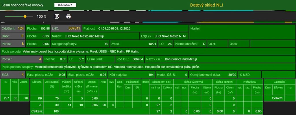 Dále se jedná o p.č. 1269/7 vedená jako lesní pozemek o celkové výměře 469 m2, vlastníme podíl 1/2 tudíž 235 m2.