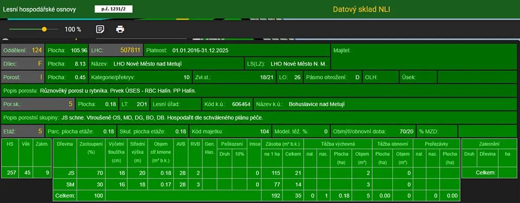 Jedná se o p.č. 1231/2 vedená jako lesní pozemek o celkové výměře 4 573 m2, vlastníme podíl 1/2 tudíž 2 287 m2.