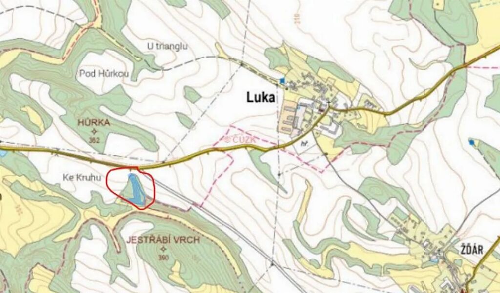 Jedná se o p.č. 1257 vedená jako lesní pozemek o celkové výměře 7 167 m2, vlastníme podíl 1/2 tedy 3 584 m2.