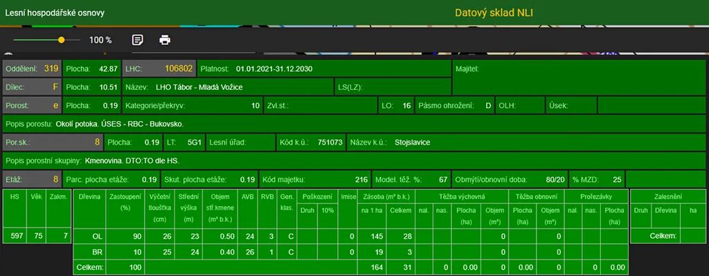 Stáří lesa a LHO viz. foto.
