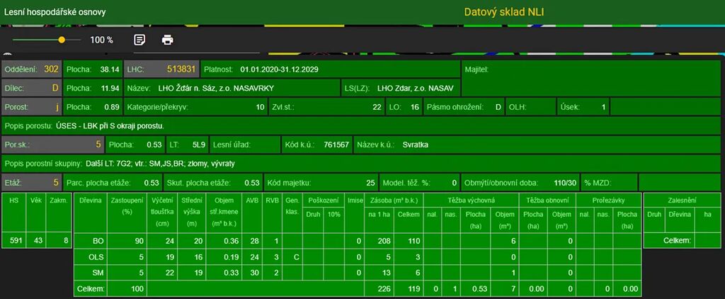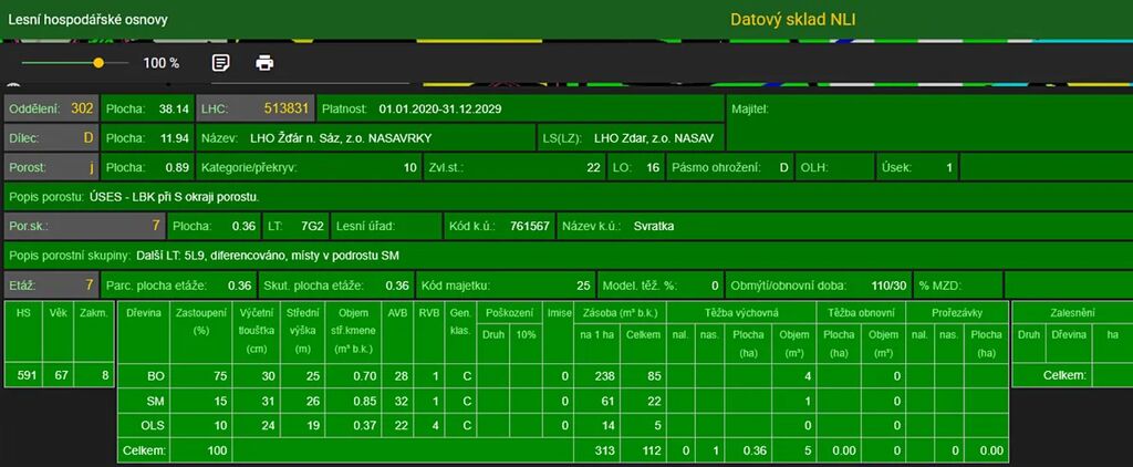 Jedná se o p.č. 721/11 vedená jako lesní pozemek o celkové výměře 8 909 m2, vlastníme podíl 1/6 tedy 1 485 m2.