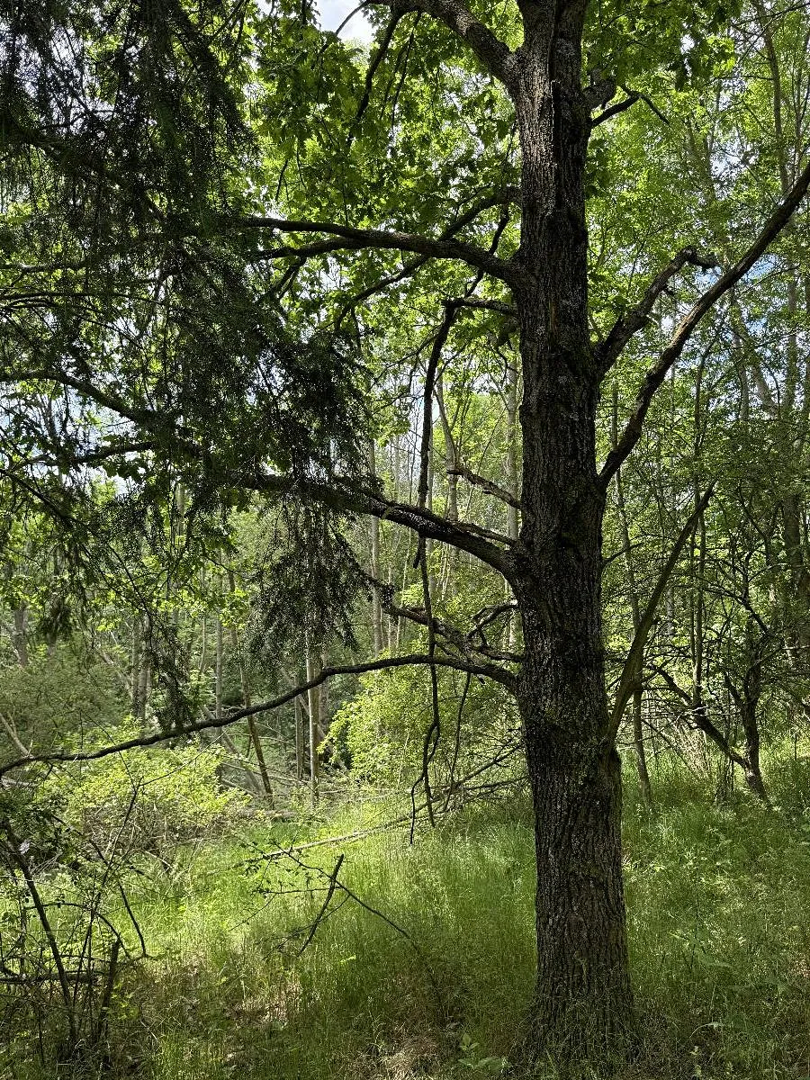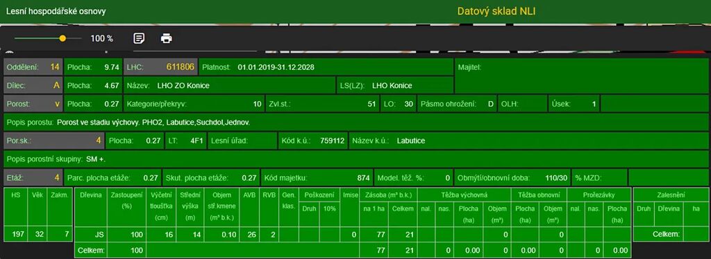 Dále p.č. 212 vedená jako lesní pozemek o celkové výměře 2 679 m2 z toho vlastníme podíl 1/3 tedy 893 m2. Stáří lesa a LHO viz. foto.