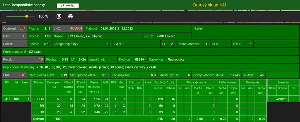 Dále p.č. 1065/2 vedená jako lesní pozemek o celkové výměře 180 m2, vlastníme podíl 5/6 tudíž výměru 150 m2.
