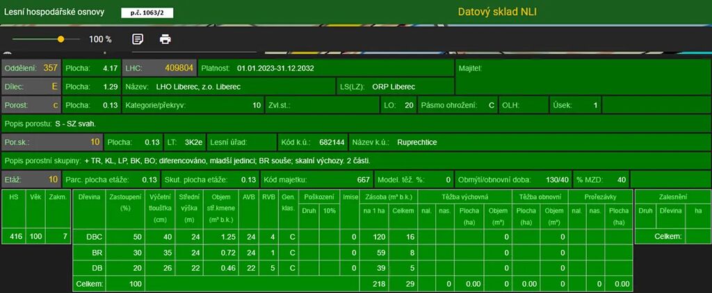 Jedná se o p.č. 1063/2 vedená jako lesní pozemek o celkové výměře 1081 m2, vlastníme podíl 5/6 tudíž výměru 900 m2.