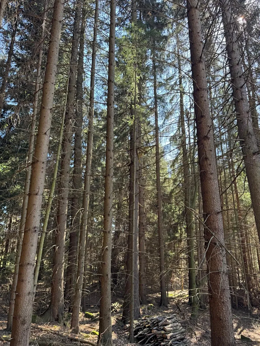 Jedná se o p.č. 709 vedená jako lesní pozemek o celkové výměře 12 776 m2, vlastníme podíl 1/3 tudíž 4 259 m2, stáří lesa 100 a 108 let, hlavní zastoupení dřevin dle LHO smrk, buk, borovice.