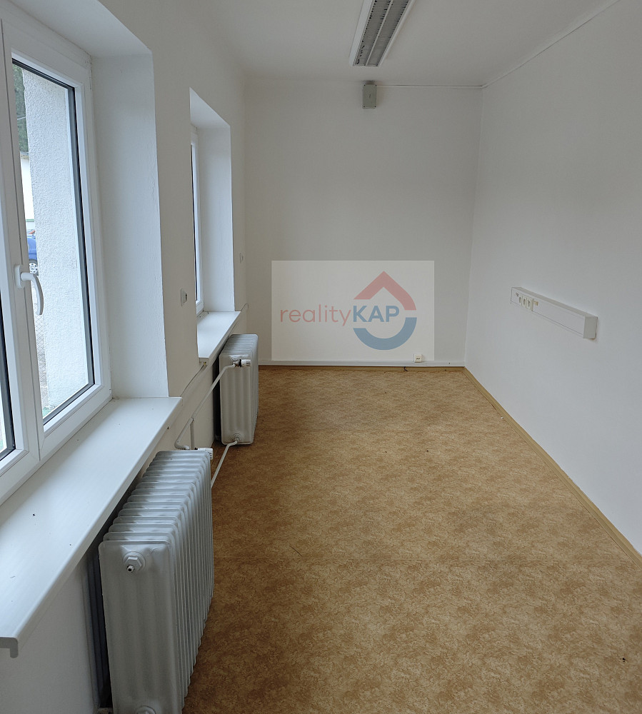 Pronajmeme prostory vhodné jako kanceláře nebo zázemí pro administrativu a služby v 1. patře budovy s vlastním samostatným vchodem. Jedná se o 3 místnosti o celkové ploše 68 m² doplněné sociálním zázemím (viz půdorys). Prostory jsou centrálně vytápěny.