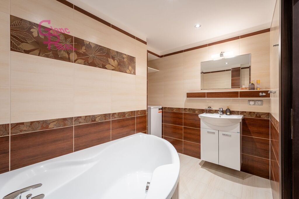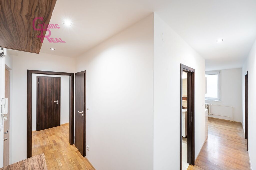 Byt o celkové ploše 73 m2, obytná plocha 64 m2 s dispozicí 2+1 a dvěma balkony je po kompletní vkusné rekonstrukci s rekuperační jednotkou v obývacím pokoji, jádro zděné, nová kuchyňská linka na míru vč. spotřebičů, nová koupelna s rohovou vanou. V bytě jsou nové rozvody vody, el.energie, nové obložky dveří a nové dveře, dřevěné plovoucí podlahy a dlažba. Rovněž jsou v bytě zhotovené stropy ze sádrokartonu, zahlazené stěny.