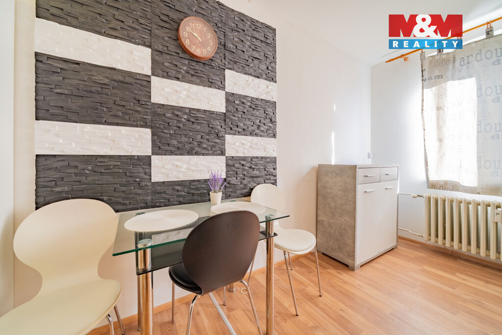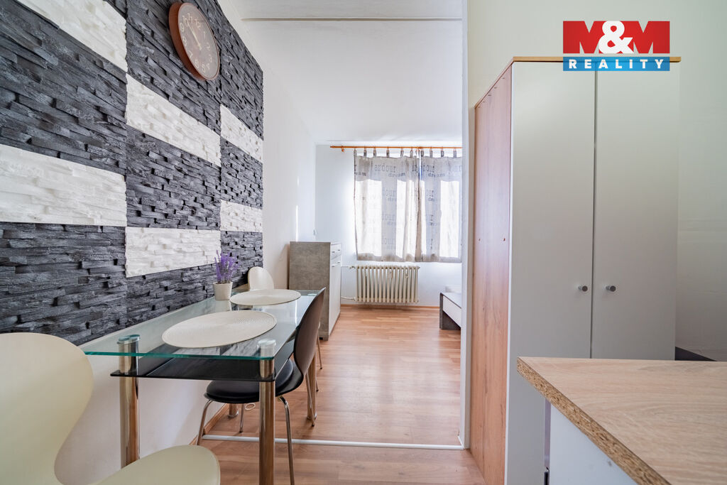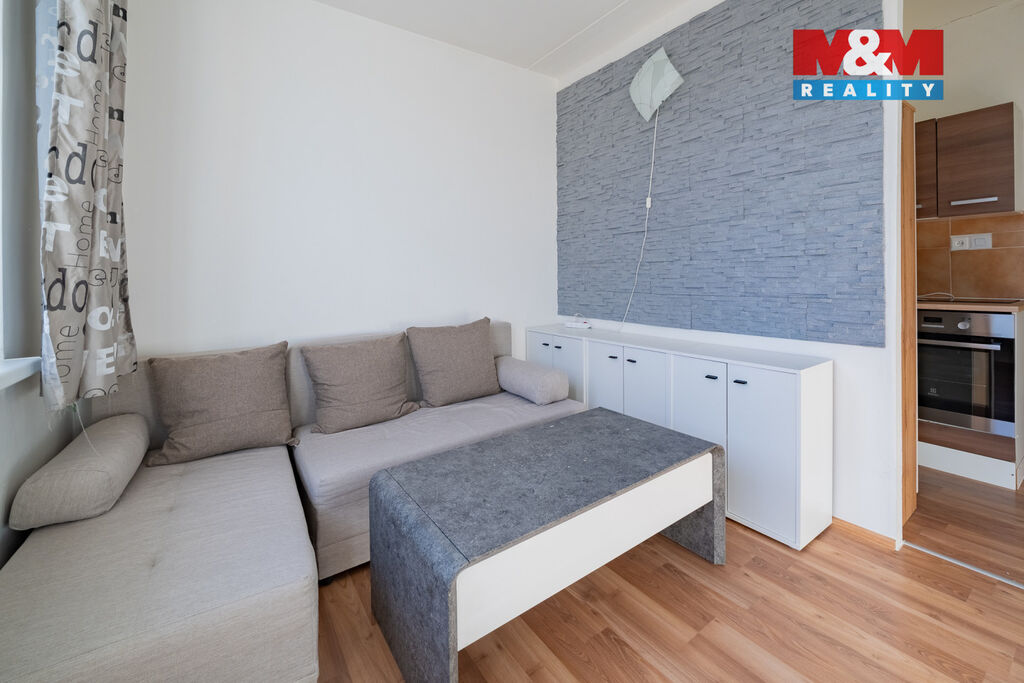 Byt je plně vybavený – kuchyňská linka se spotřebiči, moderní koupelna se sprchovým koutem a samostatné WC. V hlavní místnosti vás zaujme dekorativní kamenná stěna a prosklený jídelní kout, který prostor příjemně opticky rozšiřuje. Díky jižní orientaci je byt světlý a působí velmi vzdušně.