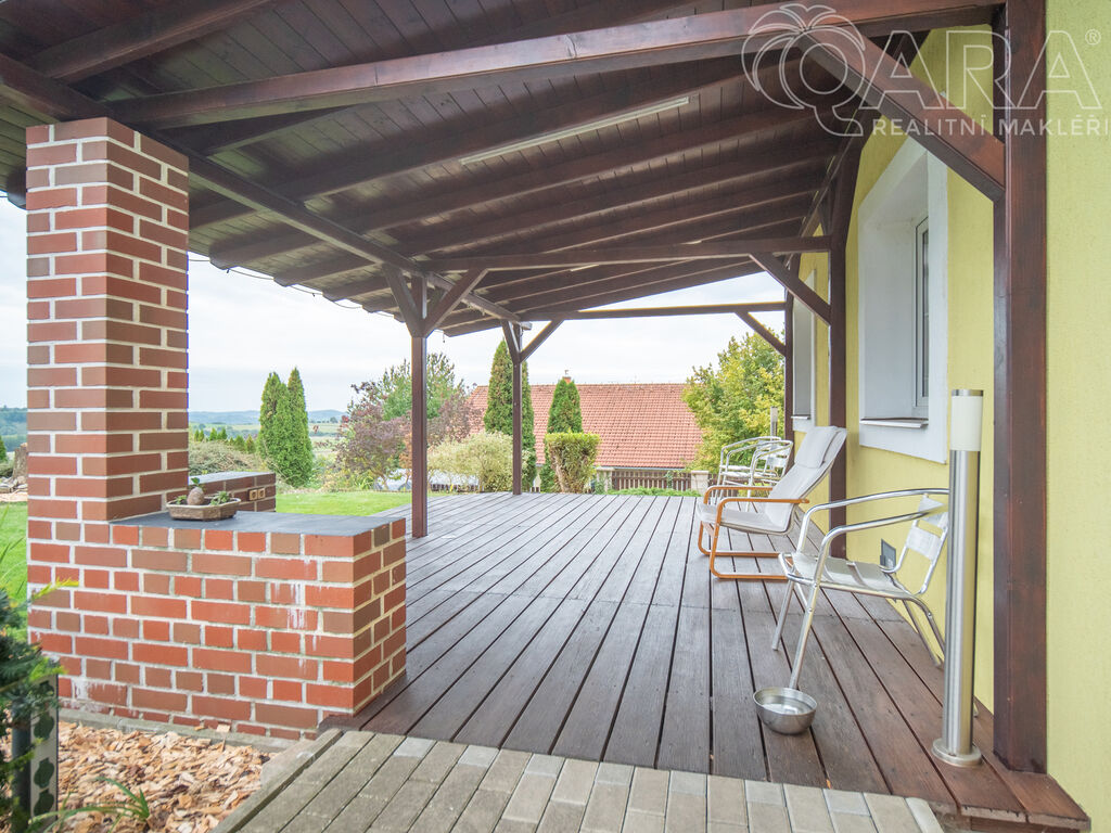 K domu náleží ještě garáž, terasa, zahrada s výměrou 1554 m2 a zahradní domek. Dům je částečně vybaven (viz fotogalerie) a je napojen na veškeré sítě. Vytápění zajištuje plynový kotel, případně je k dispozici krb. Zahrada je oplocena. Vjezd je umožněn dvěma bránami. Je tedy možný i průjezd.