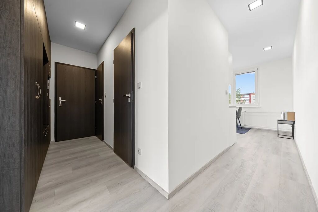 Byt prošel kompletní rekonstrukcí - nové rozvody vody a elektřiny, omítky, radiátory, kvalitní podlahy Gerflor, kuchyňská linka na míru se spotřebiči Whirlpool, vyzděné jádro, moderní koupelna se sprchovým koutem a samostatná toaleta. Dále vestavěné skříně v chodbě, stropní podhledy s bodovým osvětlením a praktické úložné prostory, k dispozici je komora v bytě, komora na patře a sklep v suterénu domu. Byt je částečně zařízený a připravený k okamžitému nastěhování.