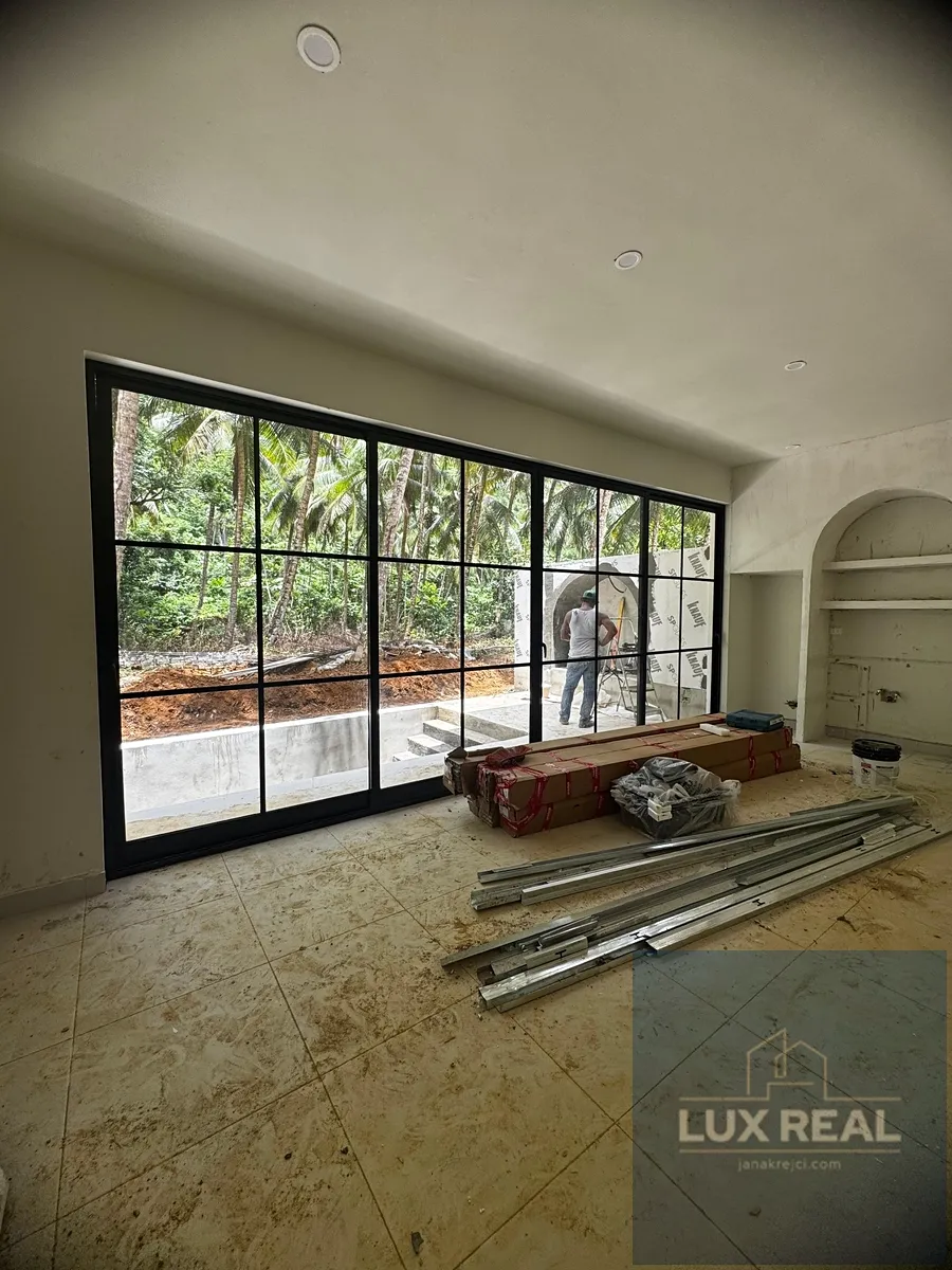 V ceně je zahrnuto: koupelna ( umyvadl, baterie, sprcha, WC), kuchyně včetně sporáku, boiler. Dveře do místností, kompletní výmalba vně i uvnitř domu, zásuvky a vypínače, osvětlení venkovní i uvnitř domu. Okna (zrcadlová, speciální úprava proti hluku a teplu), bazén.