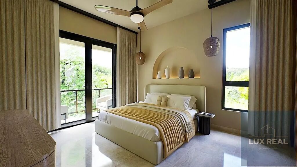 Luxusní rezidenční třípatrové domy s mezonetem s bazénem a whirpoolem jsou situovány na ideálním místě blízko restaurací a obchodů s docházkovou vzdáleností k jedné z nejkrásnějších panenských pláží Dominikánské republiky - Playa El Valle.
