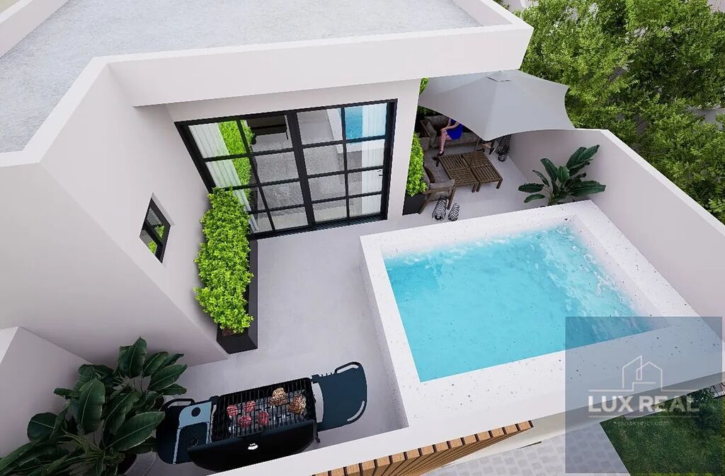 Projekt tvoří 3 domy s privátním vchodem ke každému z nich, které se skládají z pravé a levé části po jednom apartmánu v 1.NP a druhém apartmánu v 2.NP. Apartmán umístěný v 1.NP o dispozici 2+KK o výměře 52m2 a s terasou o výměře 28m2 s bazénem, za 119.000 USD, dále druhý apartmán v 2.NP a 3.NP o velikosti 2+KK za 125.000 USD s terasou na které je umístěn whirpool je možná i varianta 3+KK za 139.000 USD . Osvětlení celého objektu, bezpečnostní elektrická brána v komplexu, parkovací místo, bezpečnostní kamery a úložnu odpadků.