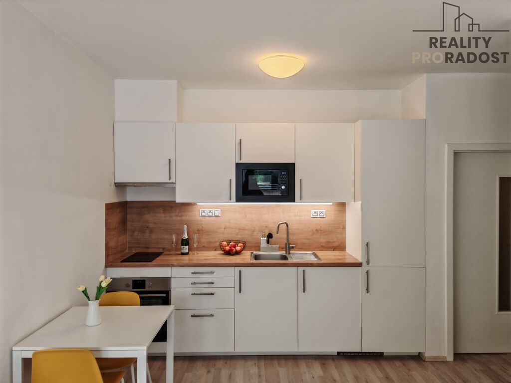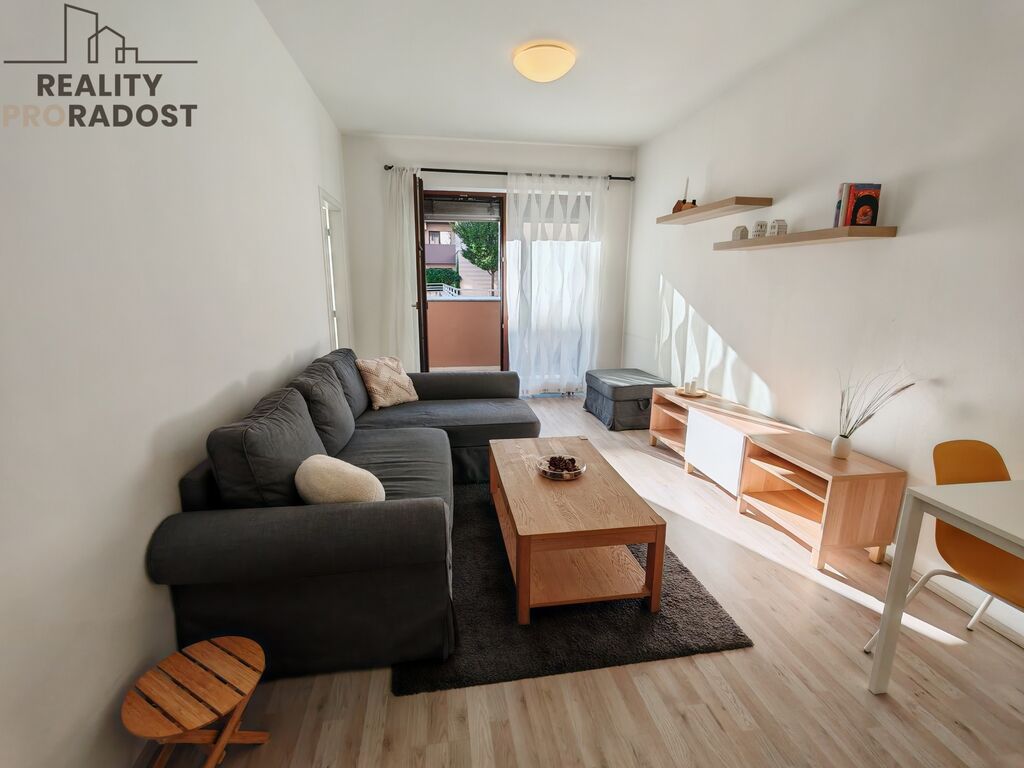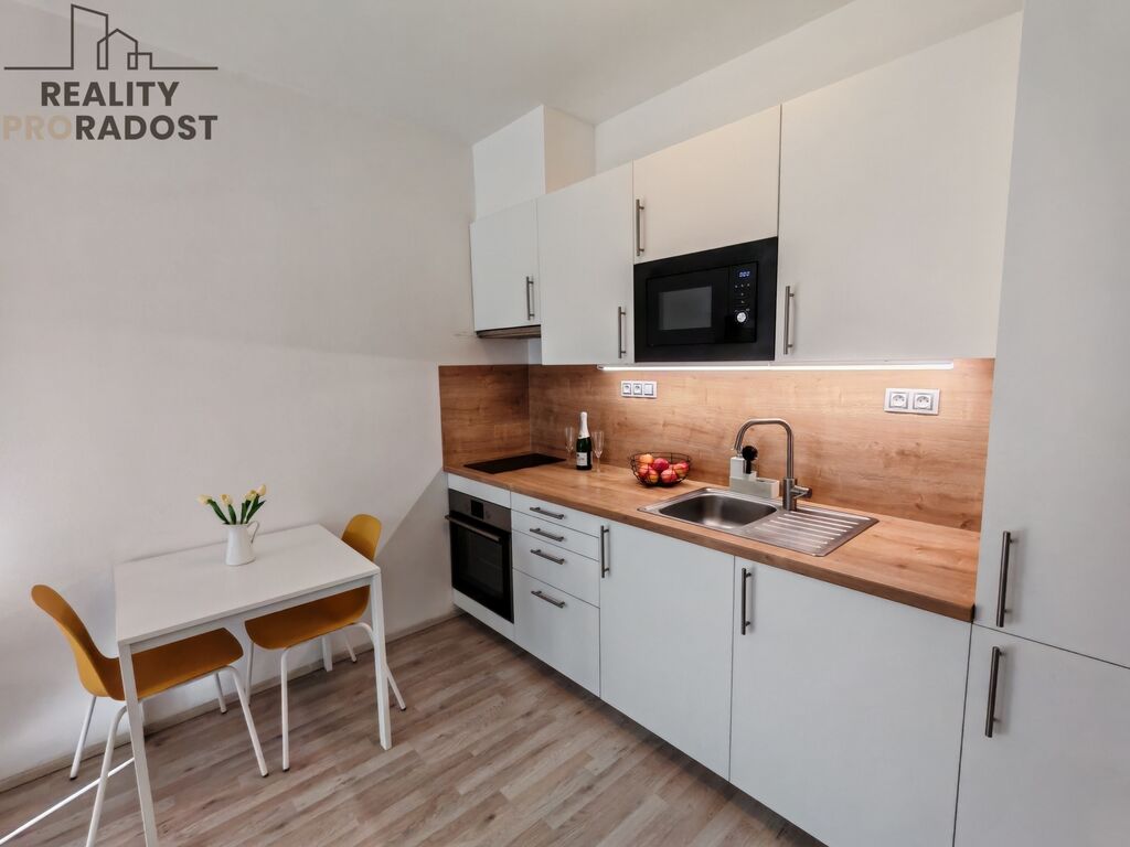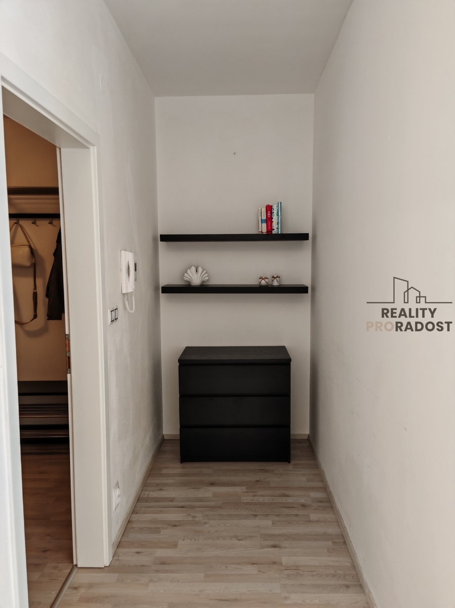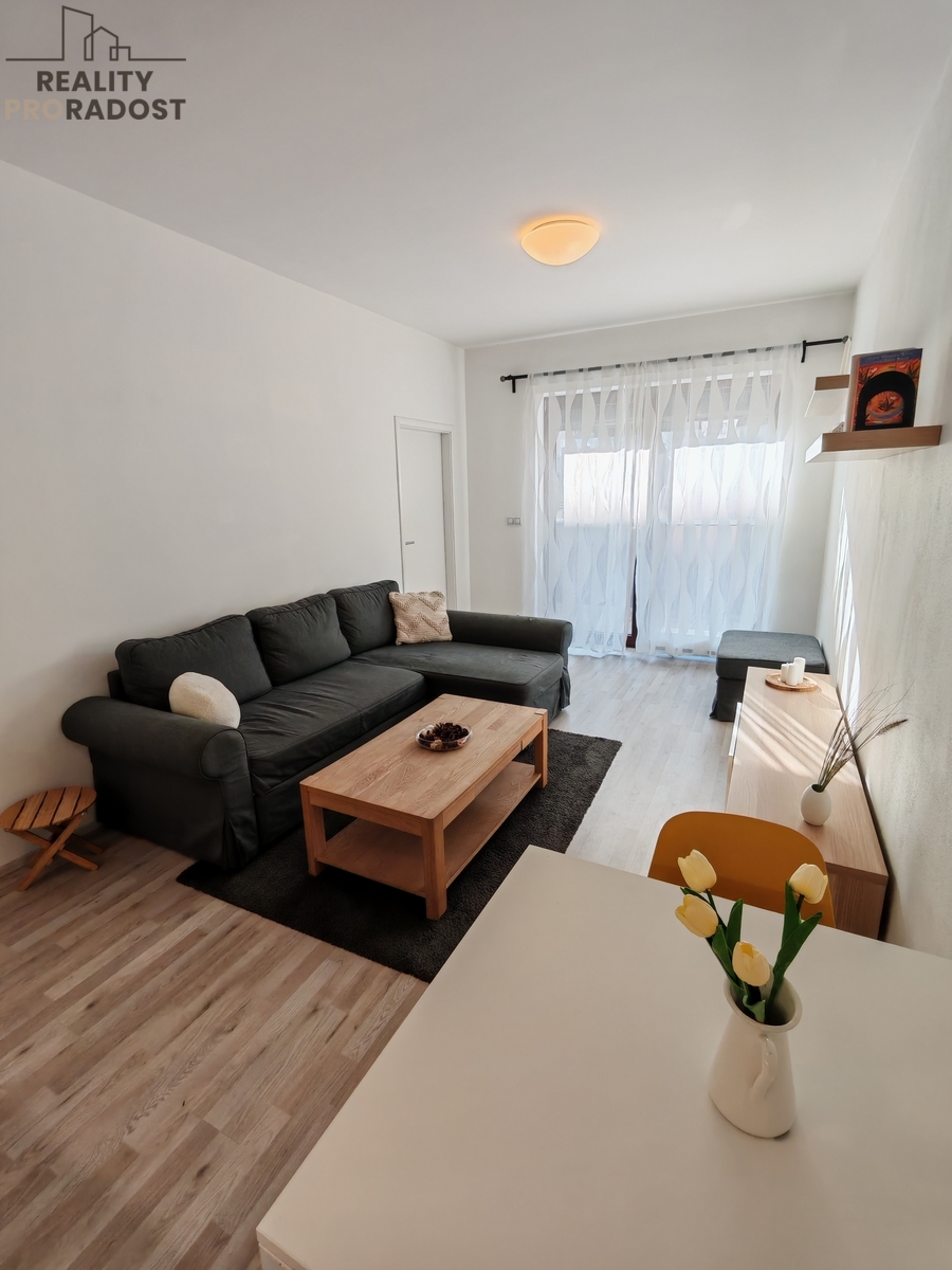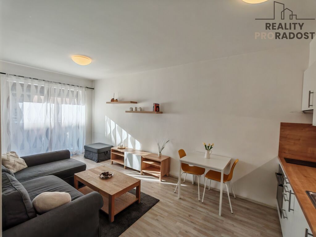 Byt se pronajímá částečně zařízený, nábytek není možné z bytu odstěhovat. V kuchyni se nachází kuchyňská linka s vestavěnou indukční varnou deskou, troubou, digestoří, a ledničkou. Obývací pokoj je zařízený jídelním stolem a židlemi, sedačkou, konferenčním stolkem, komodou pod TV a drobnými policemi. V předsíni je botník a věšák na šaty, ložnice nezařízená. V koupelně s vanou je k dispozici pračka.