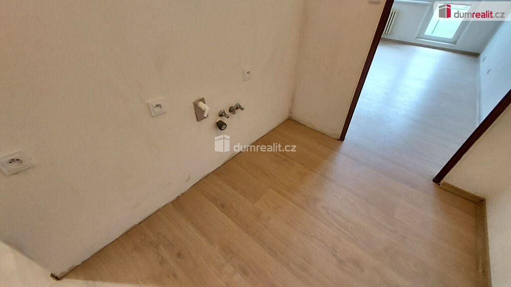 Prostor pro kuchyňský kout je dispozičně oddělený od obývacího prostoru, a je připraven pro vybavení linkou a spotřebiči.