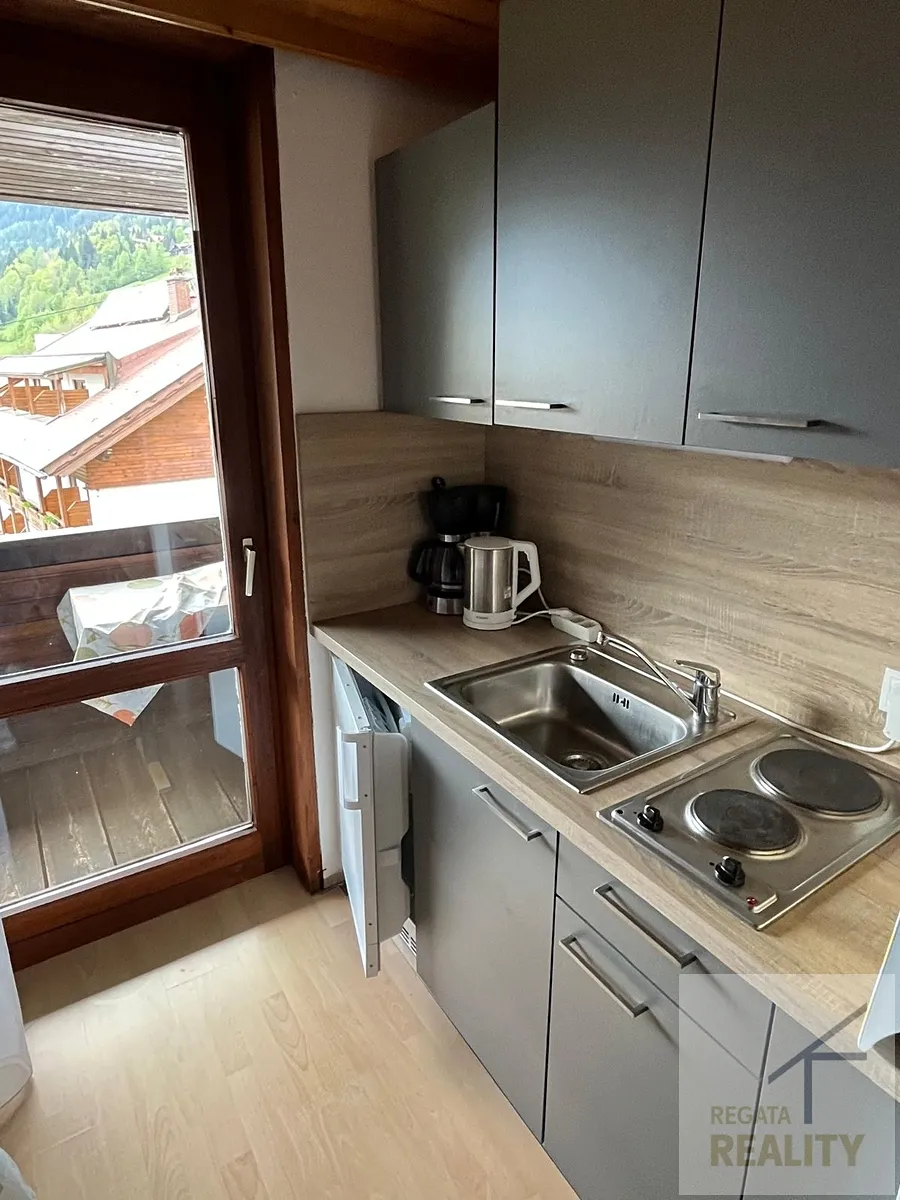 Nabízíme k prodeji autenticky zařízení byt 2+1 v pečlivě udržovaném bytovém domě centru lyžařského centra Bad Kleinkirchheimu. Apartmán se nachází na klidném místě v blízkosti termálních lázní St. Kathrein a v dochozí vzdálenosti od lanovek. Z obývacího pokoje a z kuchyňky je východ na zastřešenou lodžii s parádním výhledem na hory. Byt se skládá s ložnice, obýváku, kuchyňky a záchodu s WC. Součástí apartmánu je i sklepní box v suterénu a k dispozici je lyžárna a parkování před domem. Díky dálkovému vytápění na biomasu jsou i rozumné provozní náklady.