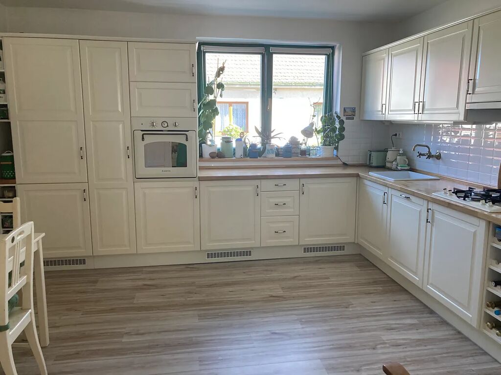 Srdcem rodinného domu je v přízemí situovaná prostorná kuchyně s jídelnou, která je vybavená dokonalou kuchyňkou linkou (plynová varná deska, horkovzdušná trouba, vestavná lednice, vestavná myčka, digestoř) a na ni přes halu pokračující hlavní obytný prostor s výhledy do zahrady a s krbovými kamny. Na tyto prostory navazuje zádveří a chodba, ze které je vstup do samostatné toalety, do koupelny s vanou a do technické místnosti. Z kuchyně je vchod na schodiště vedoucí do chladného sklípku. Z přízemí vede schodiště do obytného podkroví, ve kterém se nachází další 3 pokoje, z nichž jeden má přímo z pokoje přístupnou šatnu a jiný z pokoje půdním výlezem přístupnou zateplenou a okny prosvětlenou půdu.
