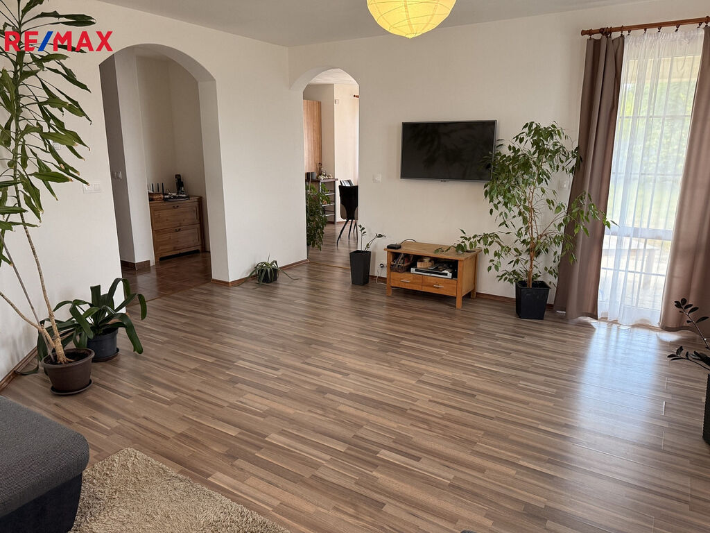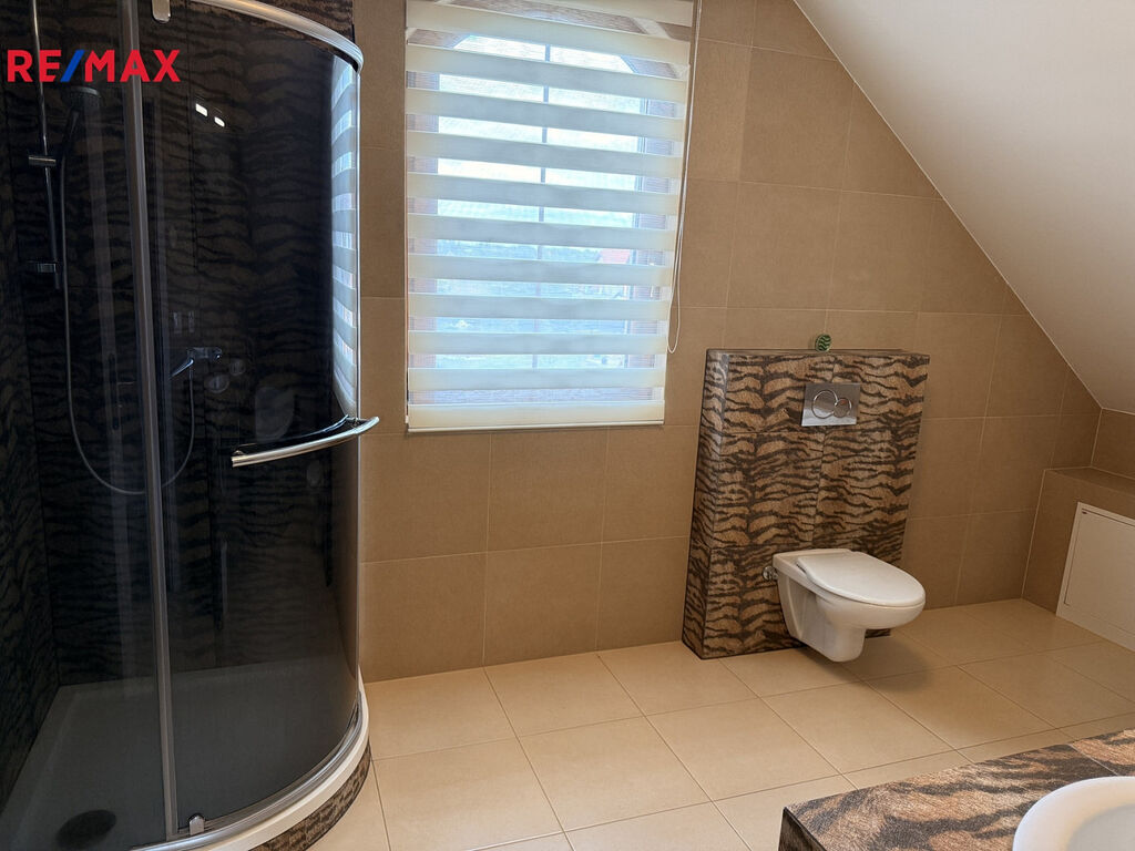 V přízemí je prostorná hala se schodištěm, , obývací pokoj , kuchyň s jídelnou , WC, koupelna , dále zimní zahrada a vstup na terasu. V 1. patře pak 3 pokoje, koupelna, šatna a balkon.
