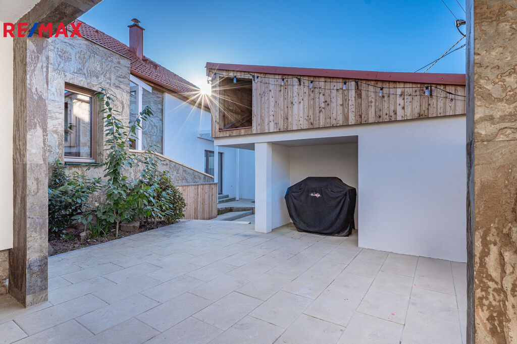 Nabízíme k prodeji atypický rodinný dům po kompletní rekonstrukci, který spojuje kouzlo původní stavby se současným komfortem a moderními technologiemi. Nemovitost disponuje obytnou částí 4+kk, prostornou garáží, uzavřeným dvorem poskytujícím naprosté soukromí a zahrádkou o výměře 129 m² orientovanou na západ. Celková výměra pozemku činí 445 m².