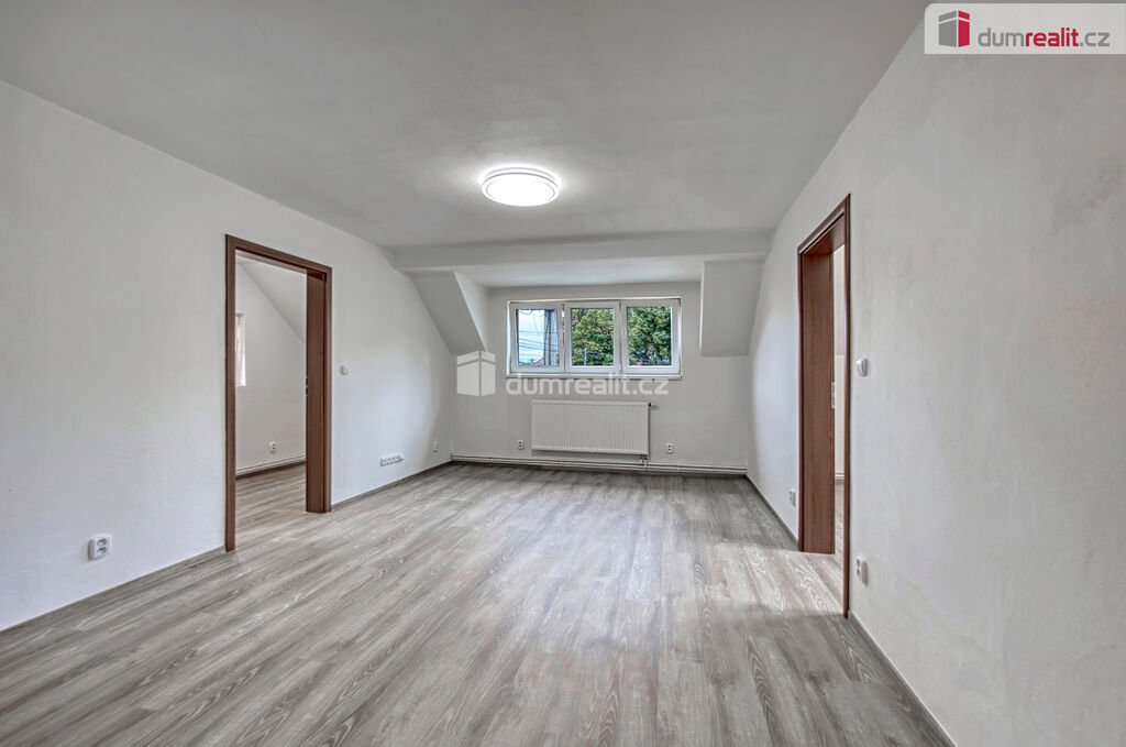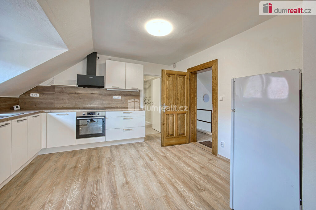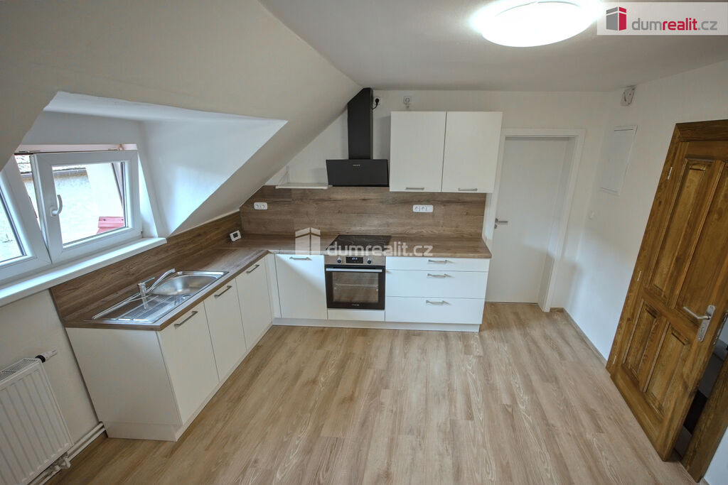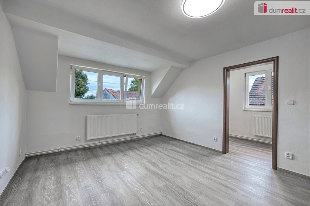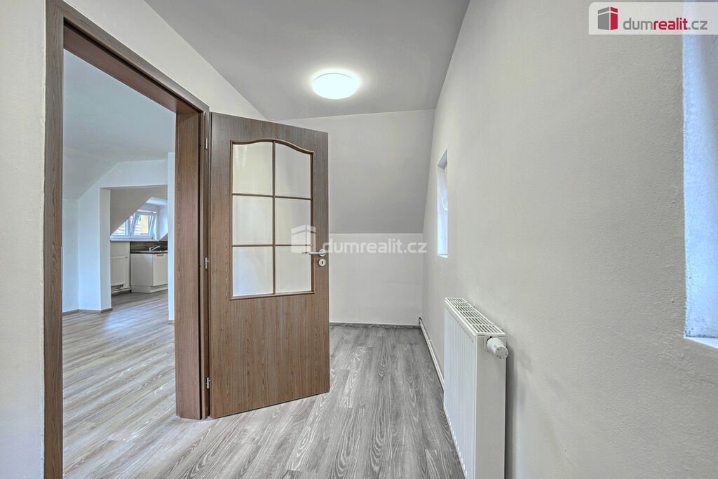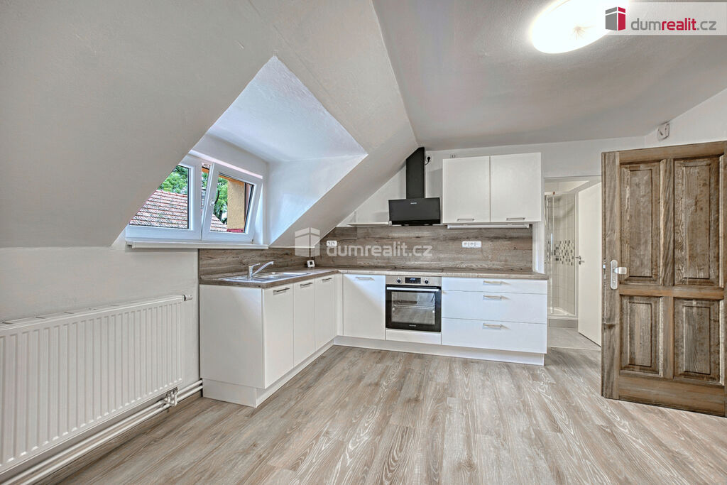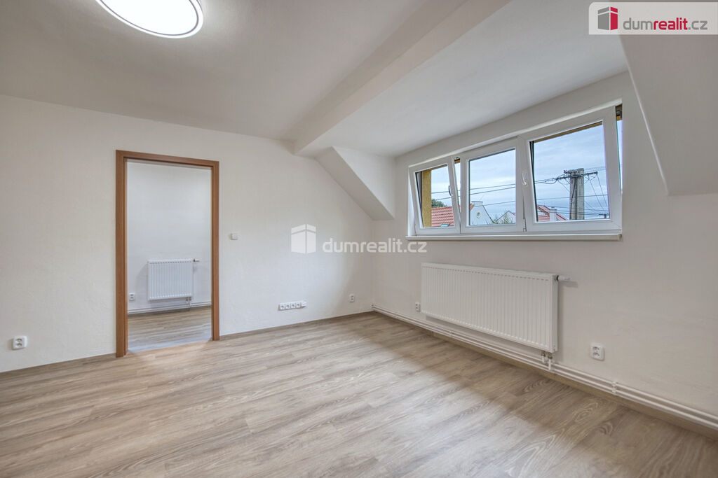 Dumrealit.cz Vám zprostředkuje pronájem nově zrekonstruovaného bytu o dispozici 2+kk ve II.NP rodinného domu v Zárybech, okr. Praha-východ. Byt má užitou plochu 58m², dispozici tvoří obývací pokoj spojený s prostornou jídelnou s kuchyňským koutem, ložnice, dvě malé podkrovní ložnice, koupelna se sprchovým koutem a WC. Byt je přístupný ze společné chodby domu. K příslušenství patří možnost užívání půdy. K dispozici uživatelům domu je zahrádka, na které je také možnost parkování. Byt má oddělené měřiče spotřeb energií, vody a elektriky (teplá vody+topení).