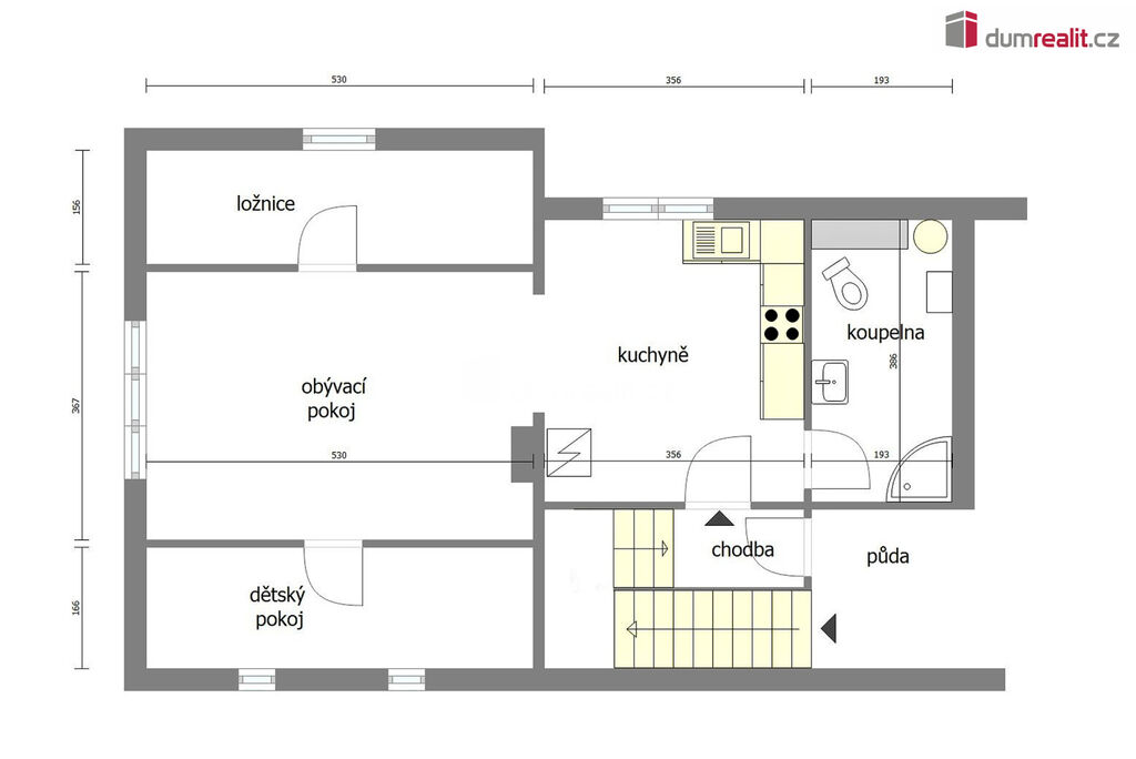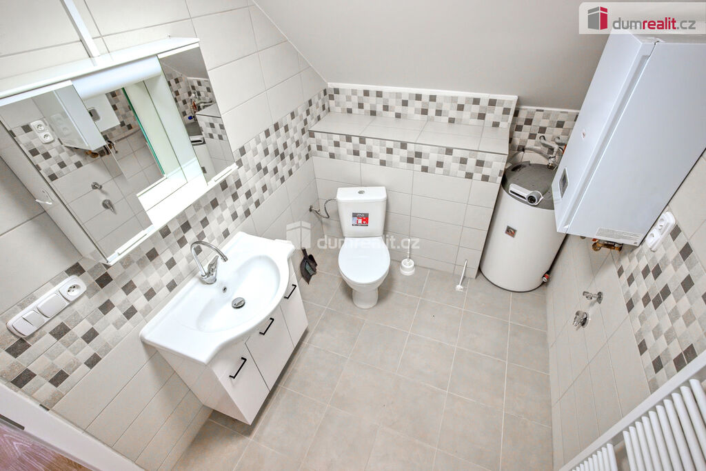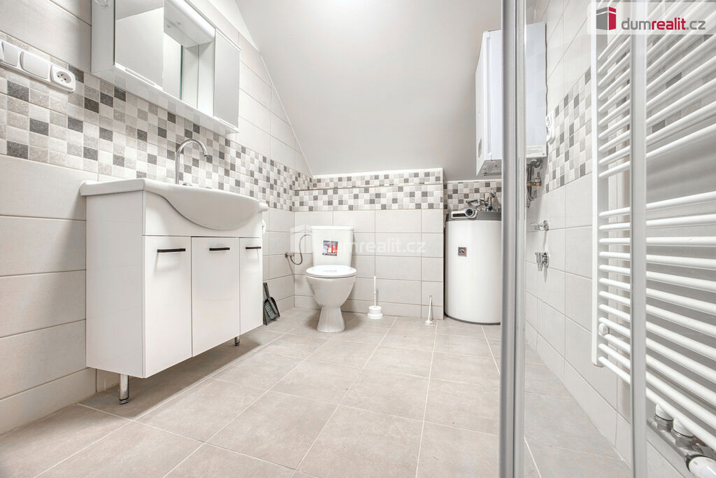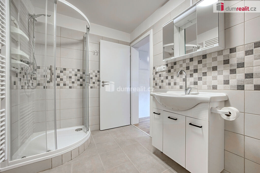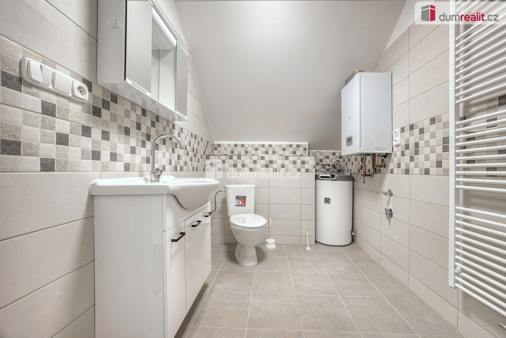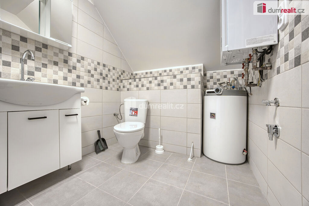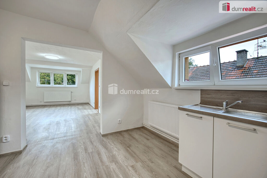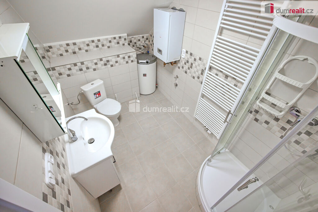 Dumrealit.cz Vám zprostředkuje pronájem nově zrekonstruovaného bytu o dispozici 2+kk ve II.NP rodinného domu v Zárybech, okr. Praha-východ. Byt má užitou plochu 58m², dispozici tvoří obývací pokoj spojený s prostornou jídelnou s kuchyňským koutem, ložnice, dvě malé podkrovní ložnice, koupelna se sprchovým koutem a WC. Byt je přístupný ze společné chodby domu. K příslušenství patří možnost užívání půdy. K dispozici uživatelům domu je zahrádka, na které je také možnost parkování. Byt má oddělené měřiče spotřeb energií, vody a elektriky (teplá vody+topení).
