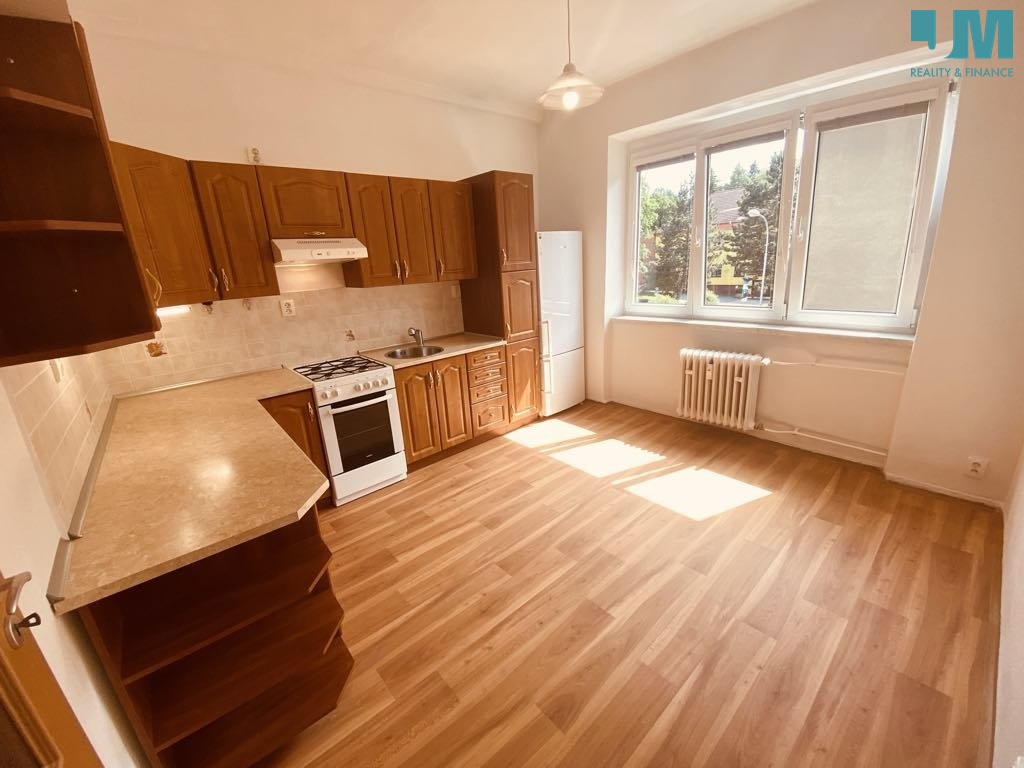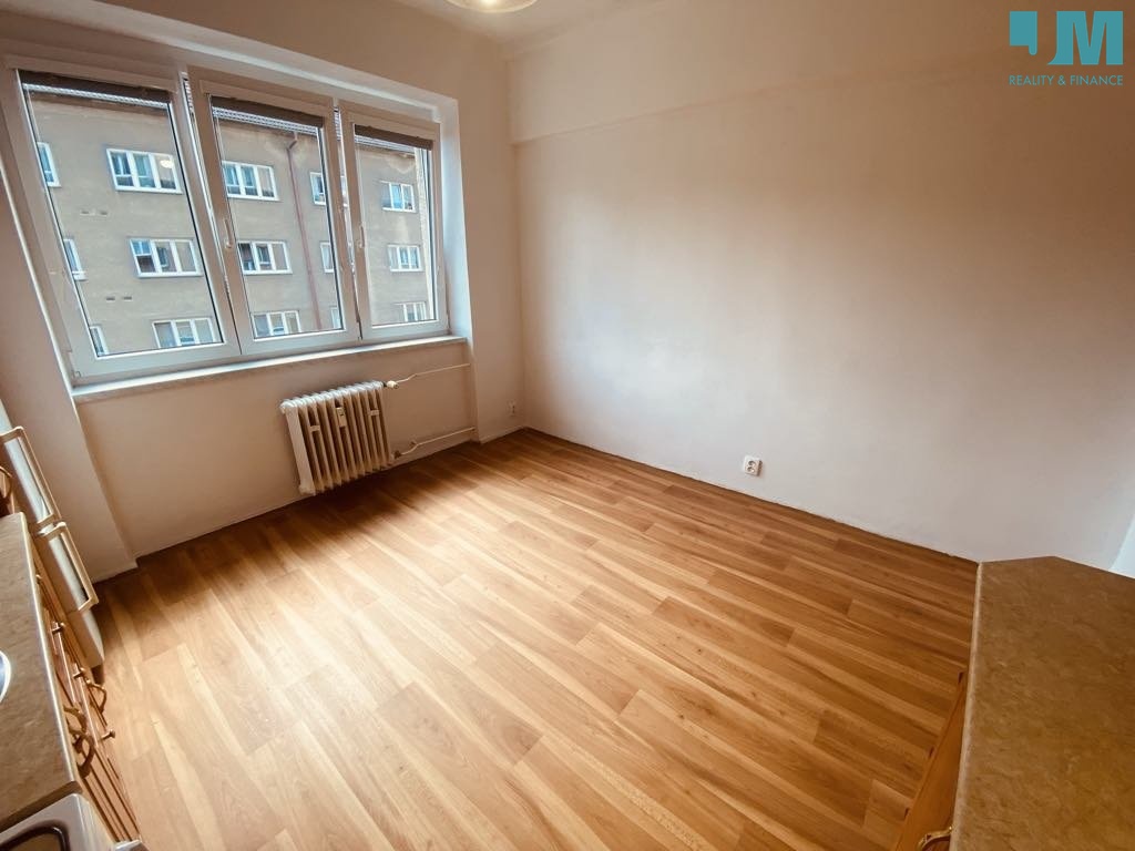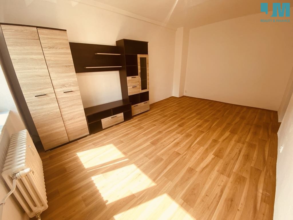 Byt tvoří samostatná kuchyně vybavená kuchyňskou linkou, kombinovaným sporákem, digestoří a lednicí s mrazákem. V prostorném pokoji je k dispozici obývací sestava se skříní.
