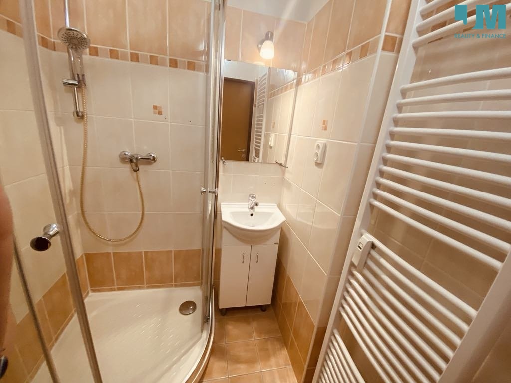 Koupelna je vybavena sprchovým koutem, umyvadlem se skříňkou a zrcadlem. Toaleta je samostatná. Na chodbě se nachází praktická botníková sestava.