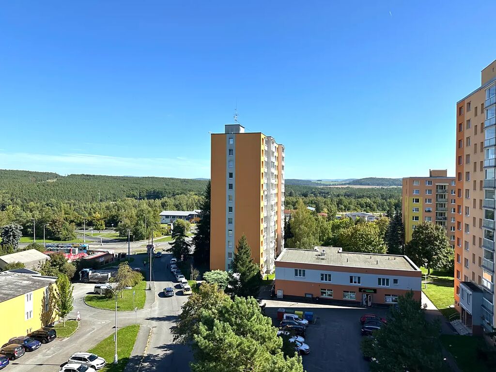 Velkou předností bytu je krásný výhled do okolní přírody, část oken je navíc orientována do klidného vnitrobloku.