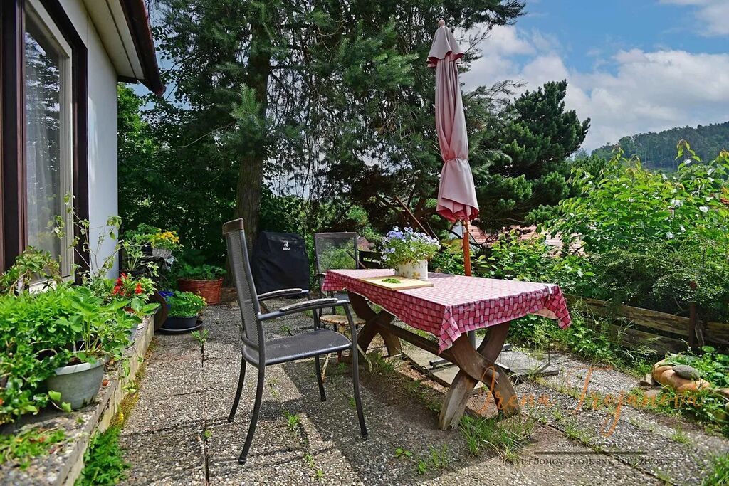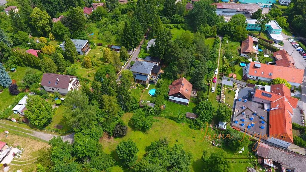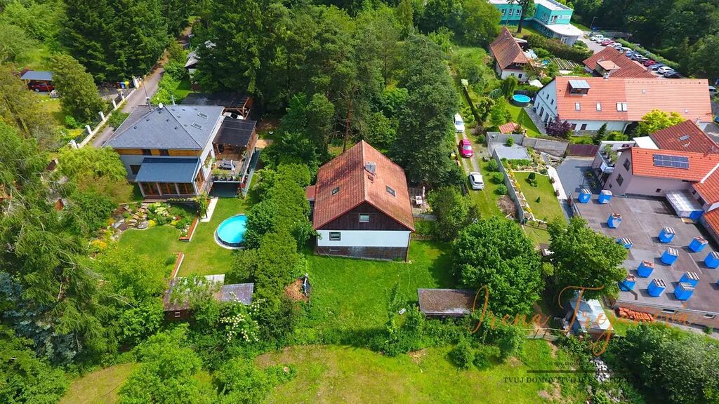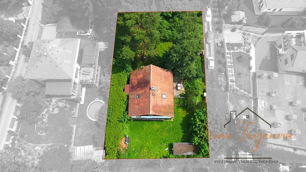 Dům se nachází na oploceném pozemku o výměře 1 048 m, který je mírně svažitý a osázený vzrostlými i ovocnými stromy, takže poskytuje dostatek soukromí i prostoru pro relaxaci.