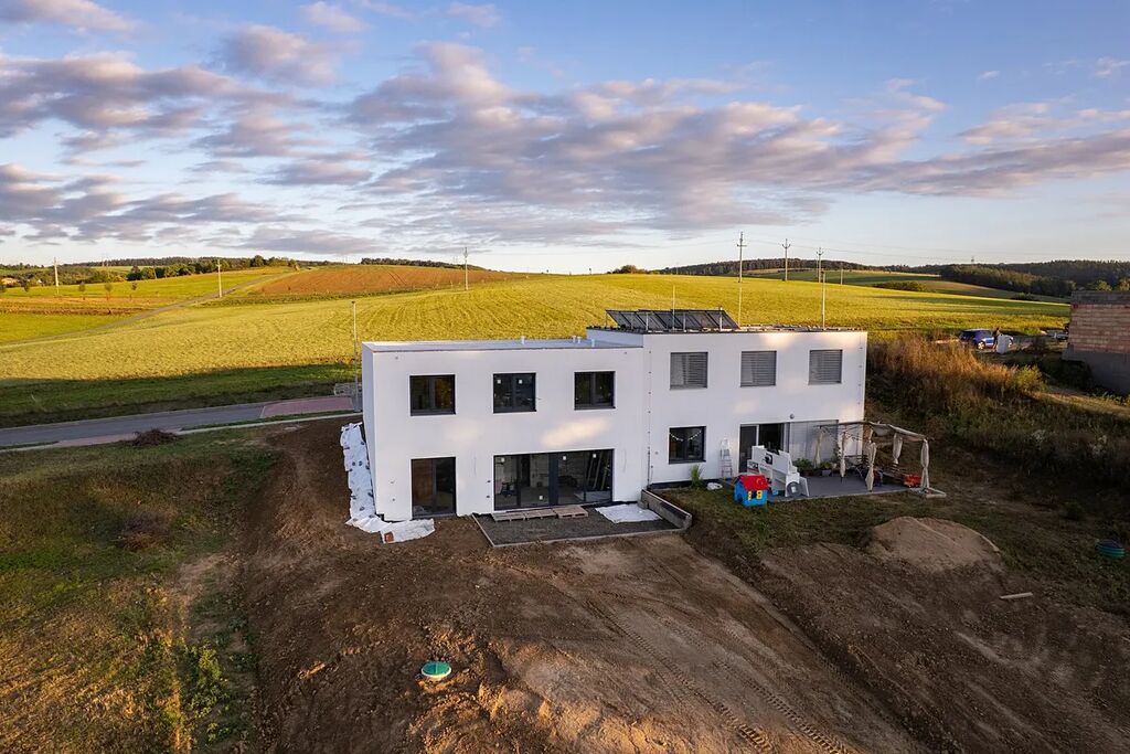 Představujeme vám novostavbu dvoupatrového rodinného domu o dispozici 4kk, dvěma koupelnami a krásným, mírně svažitým pozemkem. Dům je druhou polovinou dvojdomku. První část je již realizovaná (viz fotografie), druhý dům se staví. Tento dům je předmětem prodeje. Kolaudace plánovaná na 02/2026.