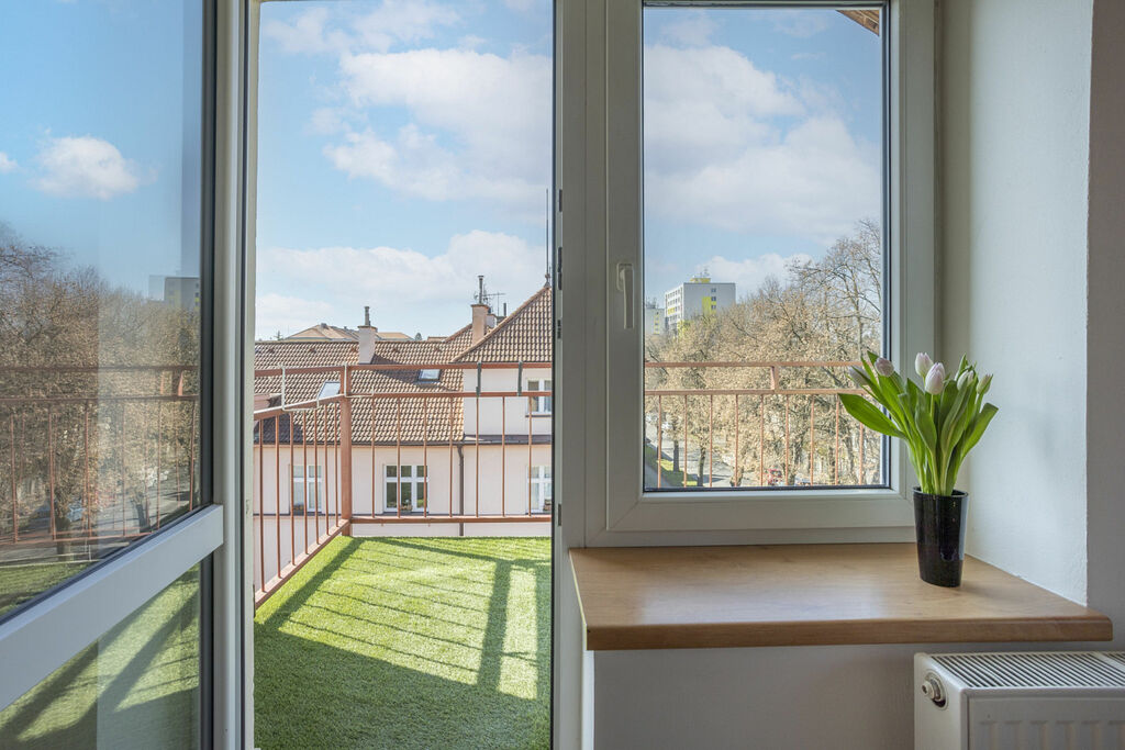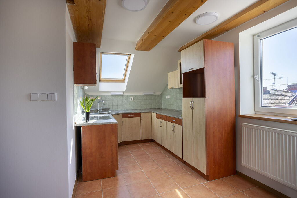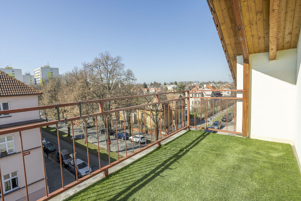 Pokud hledáte útulný a světlý byt v klidné části Poděbrad, jen 300 m od lázeňské kolonády, právě jste ho našli. Nachází se v posledním patře cihlového domu na rohu ulic Dr. Beneše a Dr. Horákové a nabízí krásný výhled, který si můžete vychutnat z prostorné terasy. Byt má podlahovou plochu 49 m², k tomu podkrovní prostor o velikosti 17 m² (nezapočítává se do podl. ploch, světlá výška pod 1,2 m), terasu 8 m² a samostatný sklep o výměře 7 m², který je ve výhradním užívání. Celková užitná plocha činí 81 m².