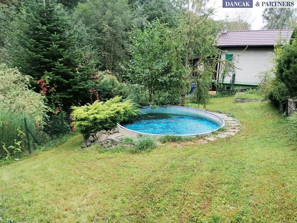 K chatě náleží okrasná zahrada o výměře 837 m, která nabízí naprosté soukromí, zapuštěný bazén, pergolu pro letní posezení a praktickou hospodářskou budovu. Celý pozemek je kompletně oplocen. Příjezd je po obecní komunikaci.