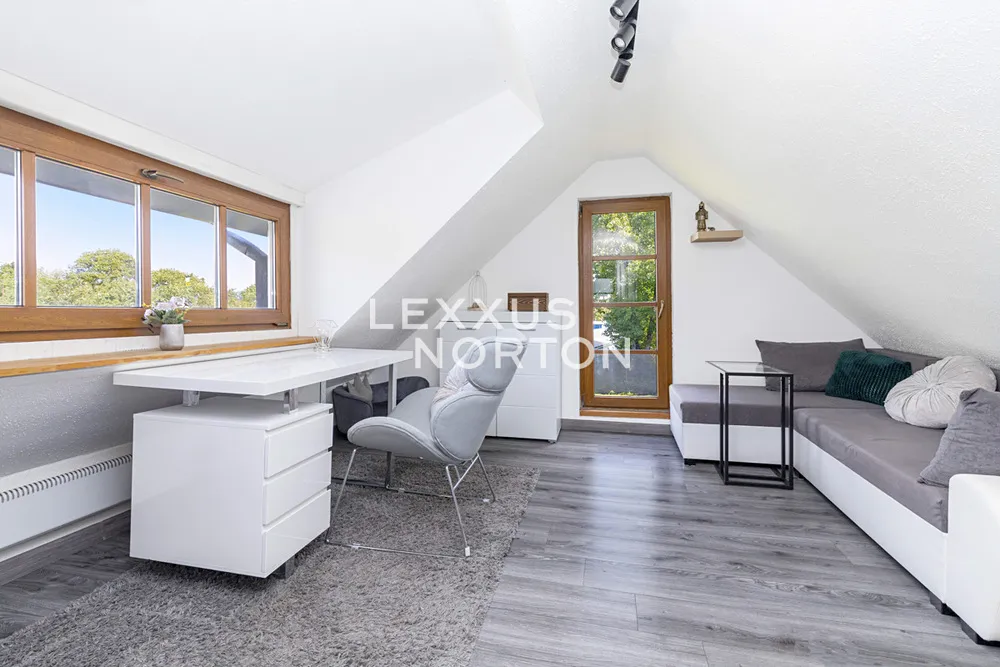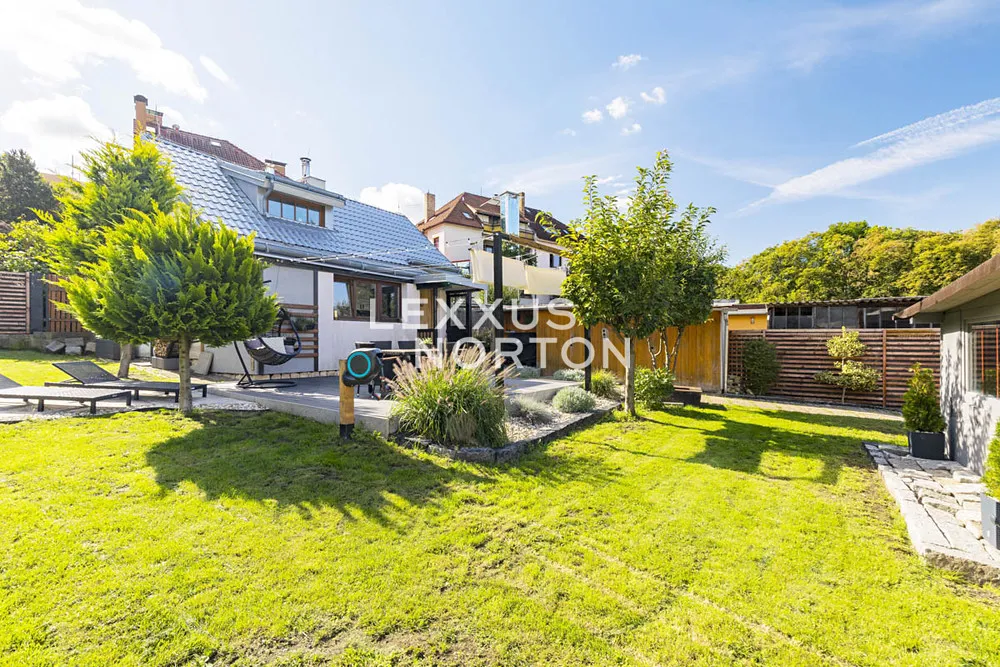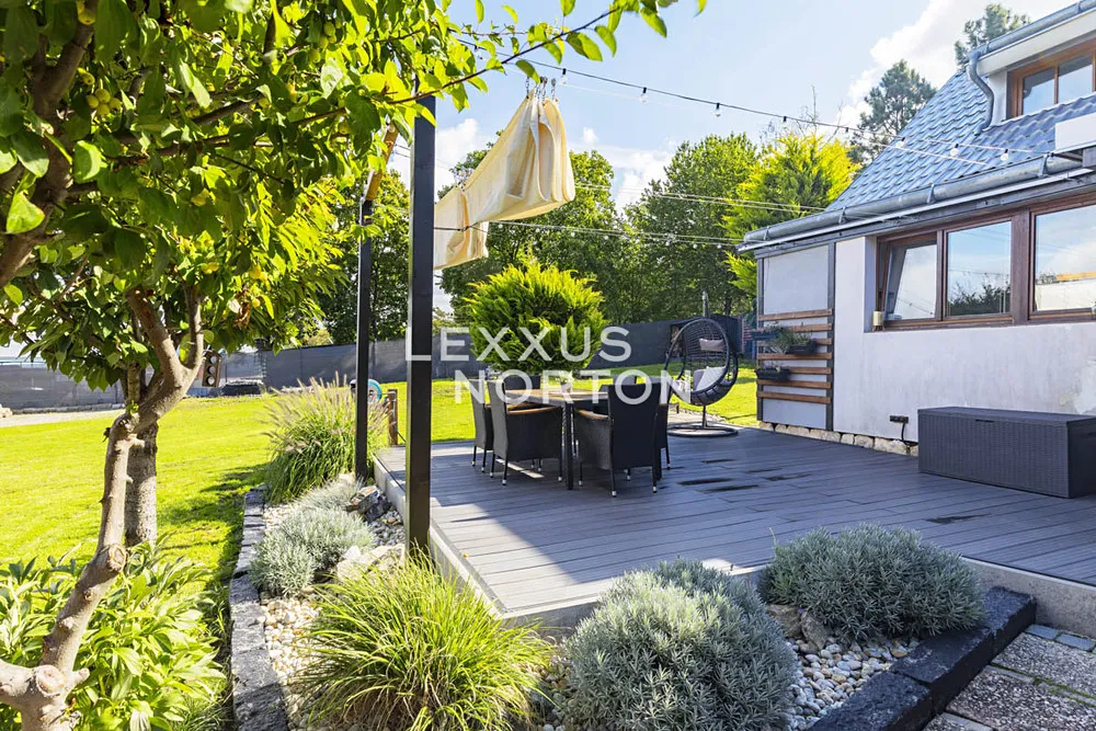Na pozemku o rozloze 850 m² se nachází menší dvoupodlažní dům po rekonstrukci určený k trvalému bydlení a garáž s vjezdem z ulice. Současná dispozice 3+1 nabízí v přízemí kuchyň, koupelnu se sprchovým koutem, ložnici a obývací pokoj s krbem. V podkroví se nachází ložnice s výhledem do zahrady, šatna a technická místnost. Terasa se sezením příjemně propojuje dům se zahradou. Parkování je možné jak v garáži, tak přímo na pozemku.