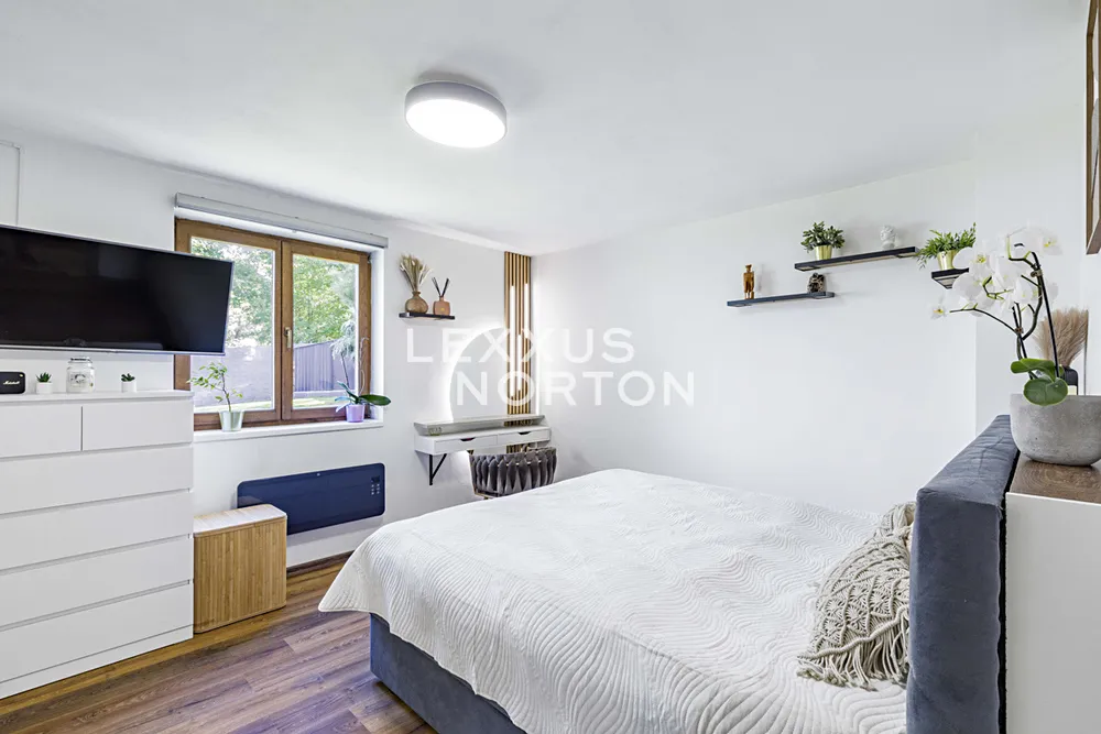 Nemovitost se prodává dle dohody vybavená. Vytápění je zajištěno moderními elektrickými radiátory Concept a krbovou vložkou Jotul. Ohřev vody zajišťuje bojler. Kuchyň je kompletně vybavena spotřebiči značek Concept a Gorenje – parní troubou, myčkou, lednicí i pračkou. Bezpečnost zajišťují nové vstupní dveře značky Komsta.