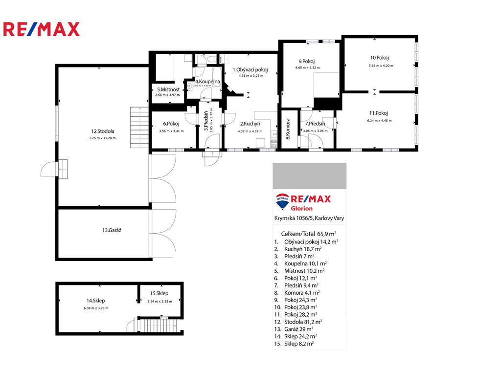 Stodola (81 m²) – otevřená až do hřebene střechy. Díky své výšce a velikosti nabízí unikátní potenciál pro přestavbu na moderní dvoupodlažní obytný prostor s otevřenou galerií, nebo na zázemí pro podnikání. Součástí stodoly je i garáž a podzemní sklep, který lze využít jako vinný sklípek či sklad potravin a surovin.