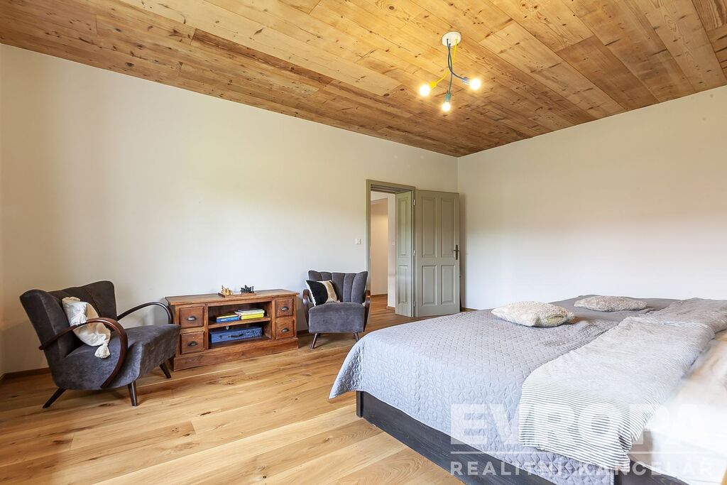 • Patro: tři světlé pokoje s výhledy do krajiny, druhá koupelna a galerie se vstupem na půdu (90 m²).