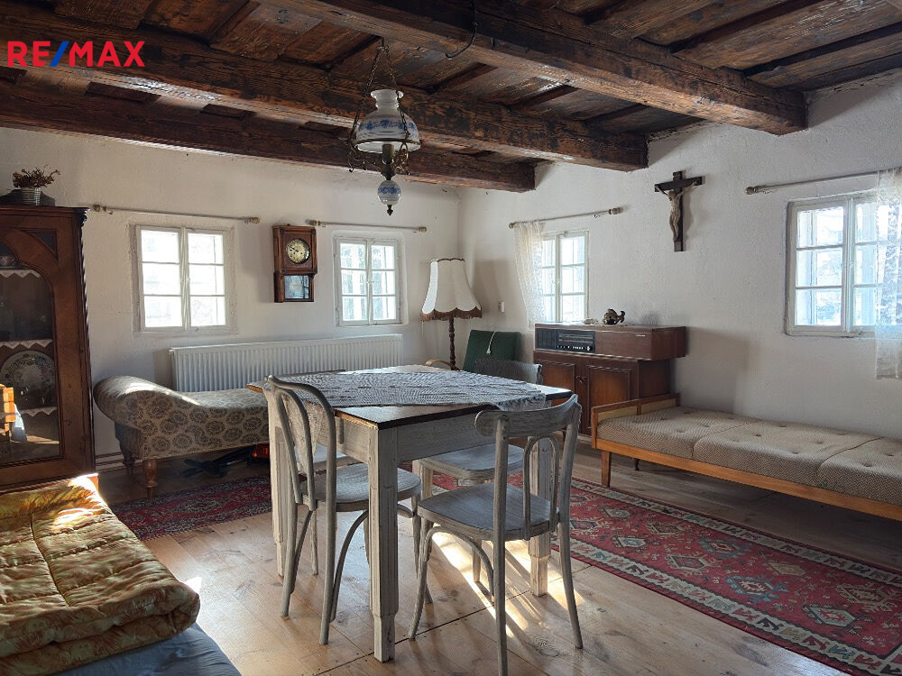 Jedná se poloroubenou lidovou stavbu, která je typická pro tuto oblast. V přízemí chalupy se nachází zádveří, chodba, kuchyně, světnice, koupelna se splachovacím WC a vstup na půdu. Chalupa prošla v posledních letech částečnou rekonstrukcí. Je zde zaveden elektrický proud, nový vodovod, nové rozvody vody a odpadu, nová kuchyňská linka, koupelna, WC. V kuchyni je sporák s troubou na tuhá paliva a s výměníkem do radiátorů, které jsou ve světnici, v chodbě a koupelně, ve světnici jsou další menší kamna tuhá paliva. Ohřev teplé vody v koupelně i v kuchyni zajišťuje elektrický boiler. V koupelně je nižší strop necelých 180cm. Okna jsou dřevěná - špaletová. Jelikož v místě není splašková kanalizace, tak je velkou výhodou nově zbudovaný biologický septik s filtrem a vsakovacím trativodem, který zajišťuje legální, bezproblémové a bezúdržbové nakládání s odpadními vodami, odpovídající požadavků zdejší CHKO Broumovsko. Nemovitost lze tedy ihned užívat. Náklady na provoz a užívání jsou zde minimální. Chalupa je vhodná pro chalupáře, kteří ocení možnosti a potenciál nemovitosti a místa, případně ke krátkodobým pronájmům. Atraktivní a vyhledávaná místa v lokalitě: stolová hora Ostaš, Adršpašsko-teplické skály, Broumovské stěny, údolí Metují, atd...