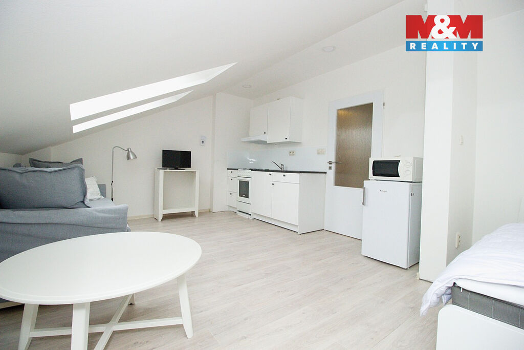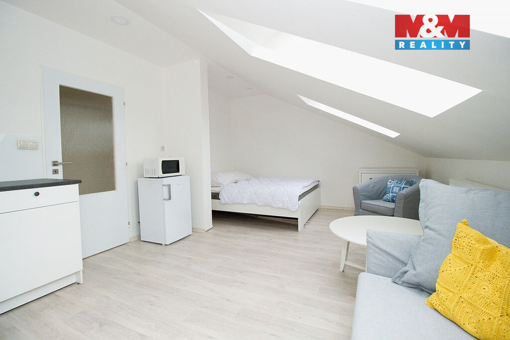 Dovolujeme si nabídnout k pronájmu podkrovní byt 1+kk ve 4. patře cihlového bytového domu v centru Opavy. Byt je tvořen vstupní předsíní, hlavním pokojem s kuchyňskou linkou a samostatnou koupelnou se sprchovým koutem, toaletou a umyvadlem. Byt je vytápěn samostatným plynovým kotlem. Jsou zde i vývody na pračku a na chodbě vlastní úložný box. Vyobrazený nábytek není součástí pronájmu. Majitel preferuje pouze pracující nájemníky. Více informací a prohlídky u makléře.