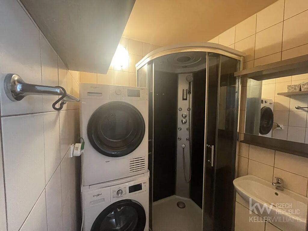 Dvě ložnice, kuchyně, koupelna, toaleta a kóje v mezipatře za měsíční nájemné 11.000,-Kč, služby 2.500,-Kč. Elektřinu a plyn si na sebe přepíše nový nájemce.