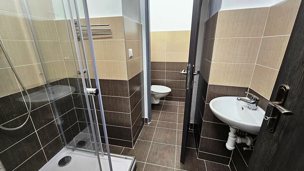 Celkem 60m², z toho obchodní plocha 45m², zázemí 15m² (samostatná kuchyňka, oddělené WC (2x), sprchový kout, umyvadlo, výlevka).