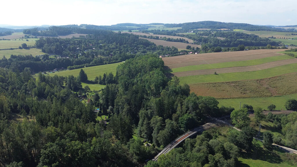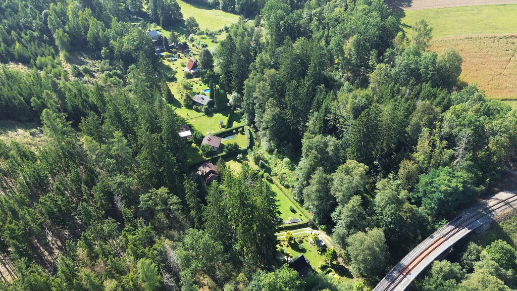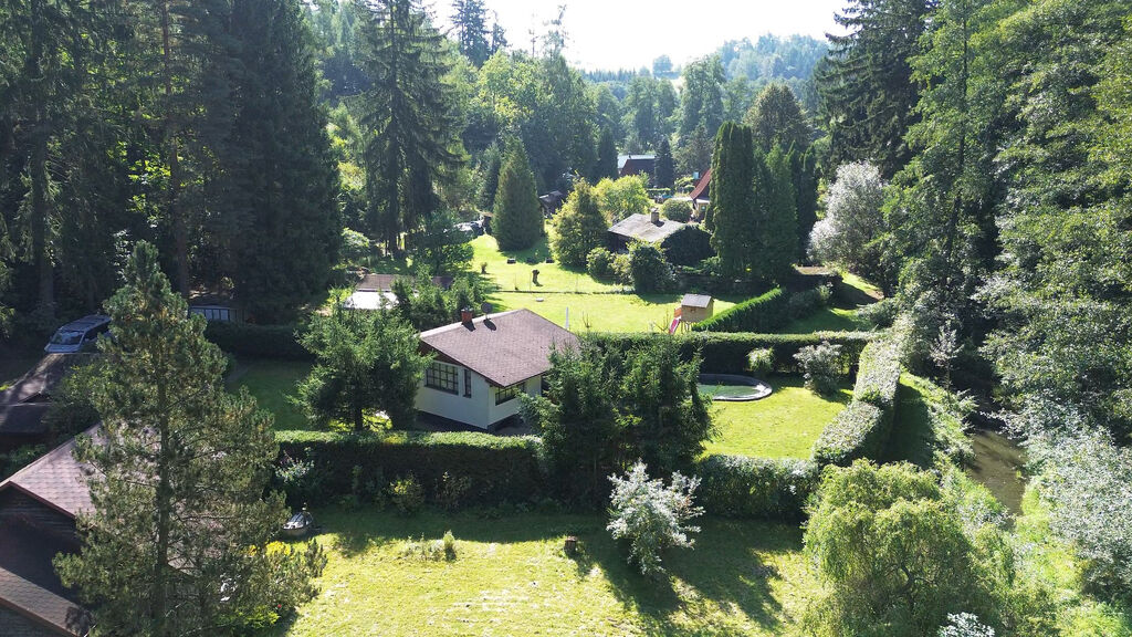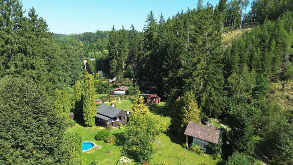 Na dohled potůček na „rybařeníčko“, okolí tvoří slunné údolí a hluboké lesy – ideální na procházky, kolo i houby.